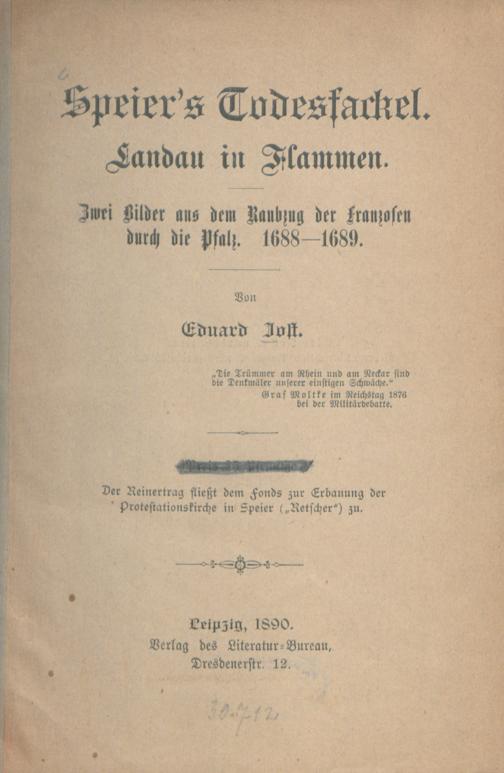 Speier's Todesfackel - Landau in Flammen : zwei Bilder aus dem Raubzug der Franzosen durch die Pfalz ; 1688 -1689 / von Eduard Jost