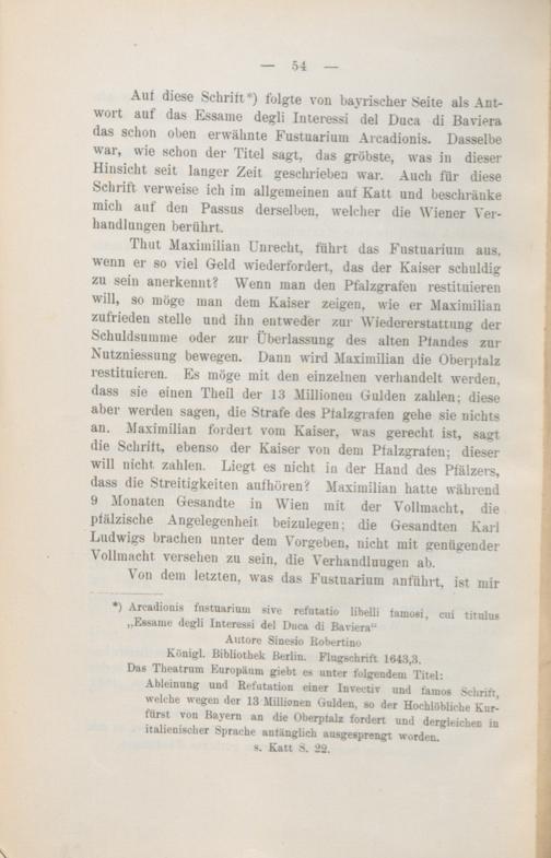 Verhandlungen über die Kurpfalz und die pfälzische Kurwürde vom Oktober 1641 bis Juli 1642 / Arthur Jüdel