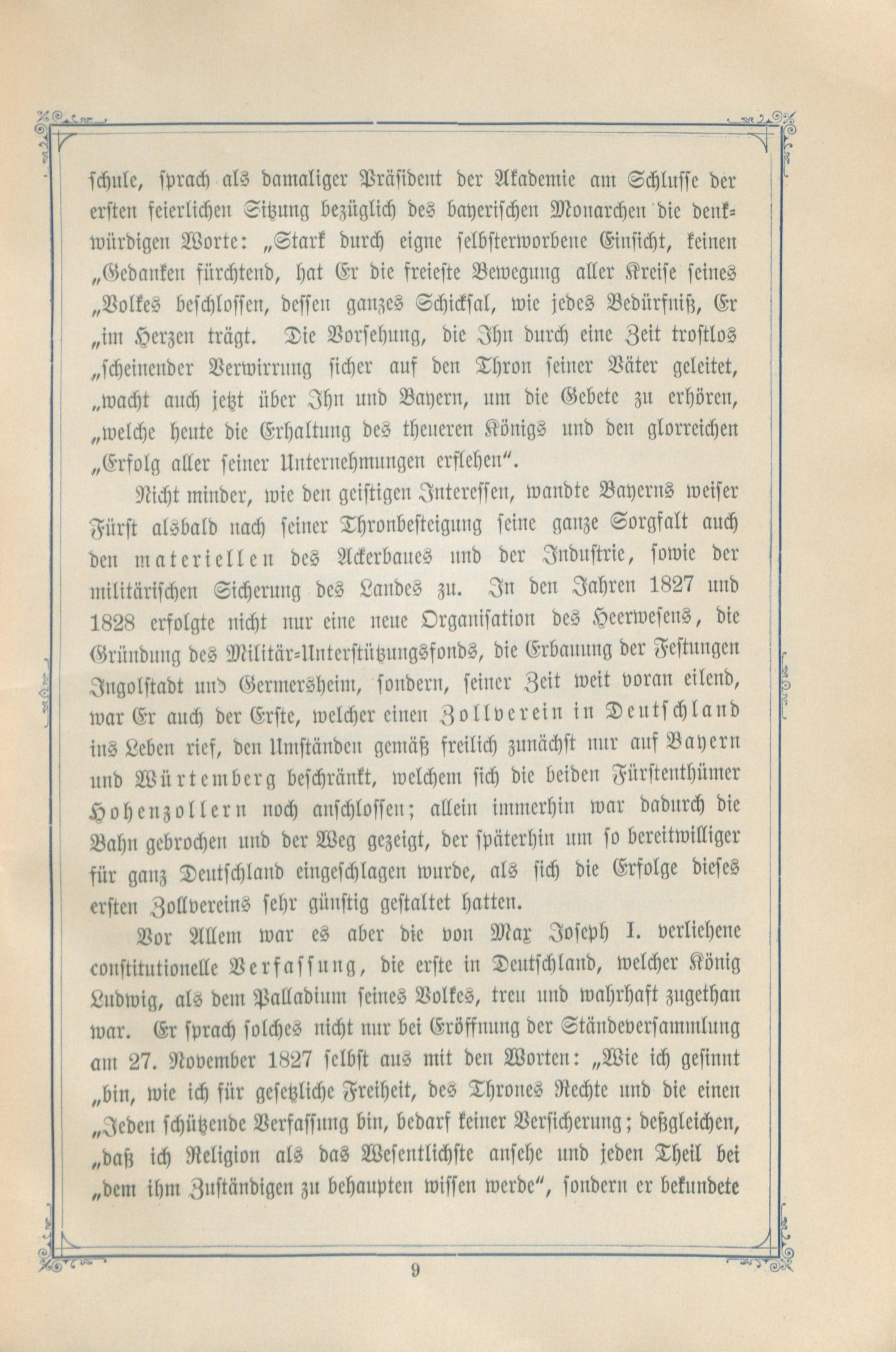 König Ludwigs des Ersten von Bayern erste Königsreise in die Rheinpfalz im Juni 1829 in Gemeinschaft mit seiner Gemahlin, der Königin Therese : ein Gedenkblatt zum Jubiläumsfeste d. großen Fürsten u. unvergeßl. Landesvaters / von Ludwig Molitor