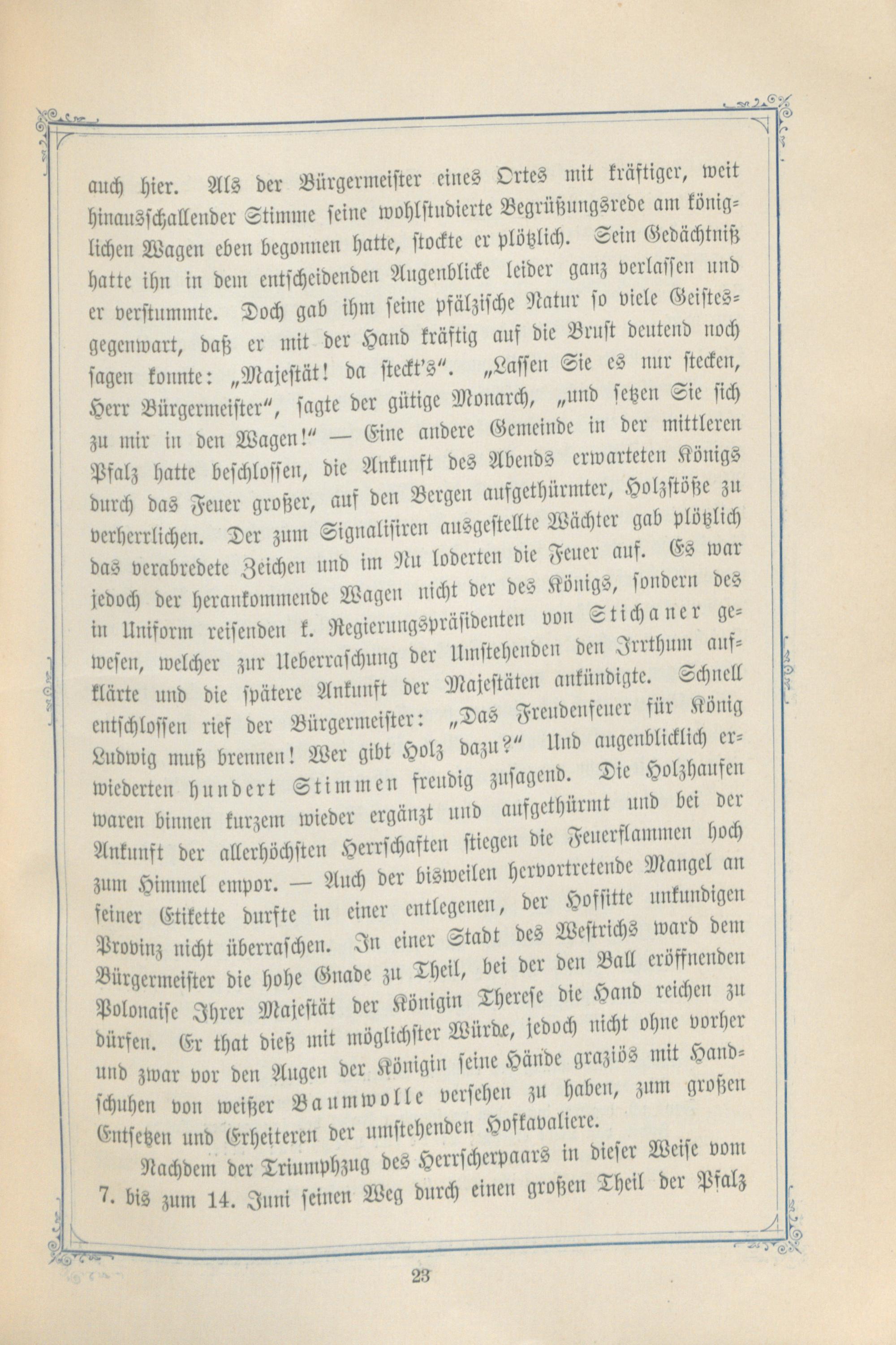 König Ludwigs des Ersten von Bayern erste Königsreise in die Rheinpfalz im Juni 1829 in Gemeinschaft mit seiner Gemahlin, der Königin Therese : ein Gedenkblatt zum Jubiläumsfeste d. großen Fürsten u. unvergeßl. Landesvaters / von Ludwig Molitor