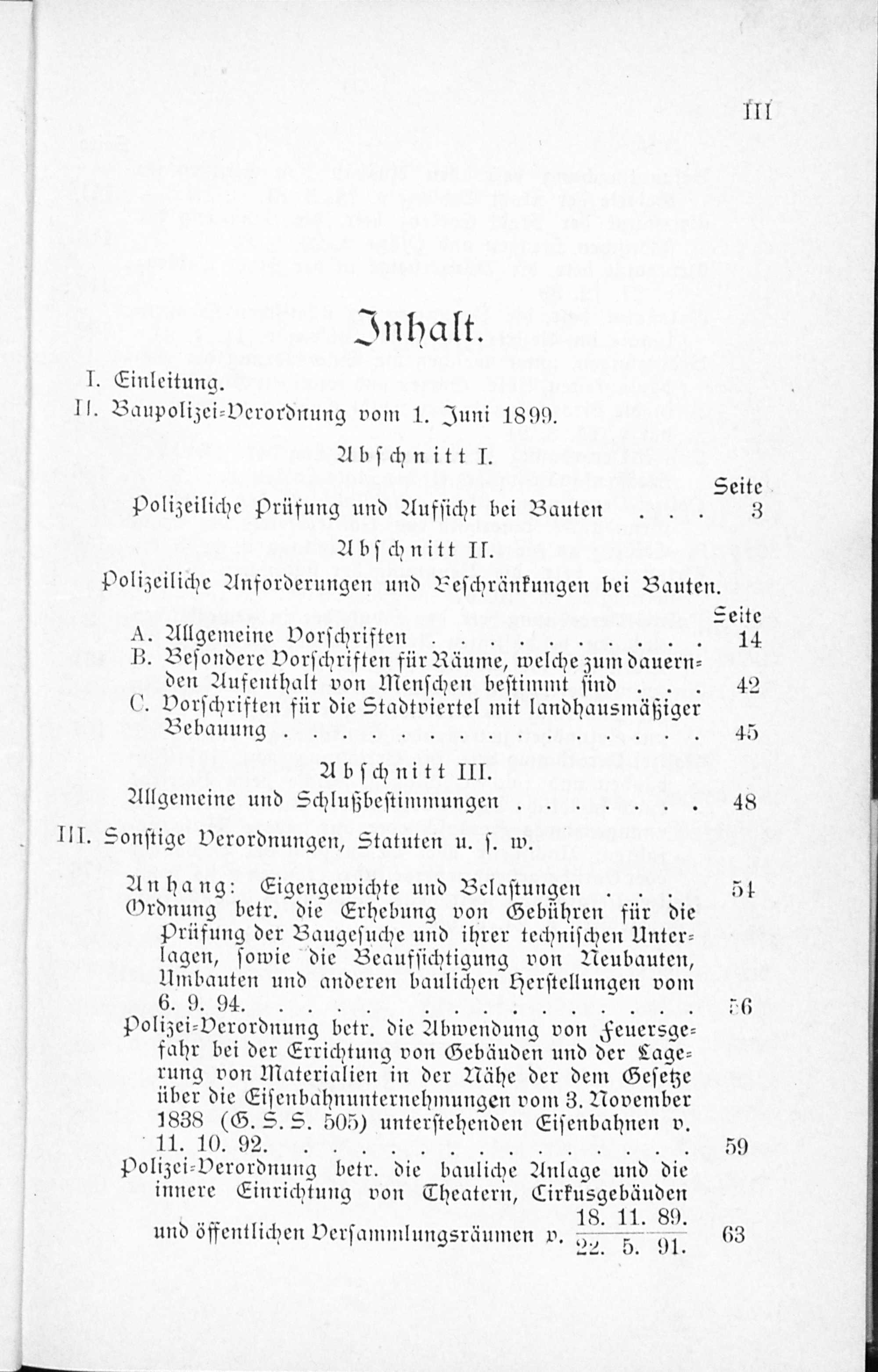 Sachverzeichniß zu B.-P.-V. vom 1. Juni 1899