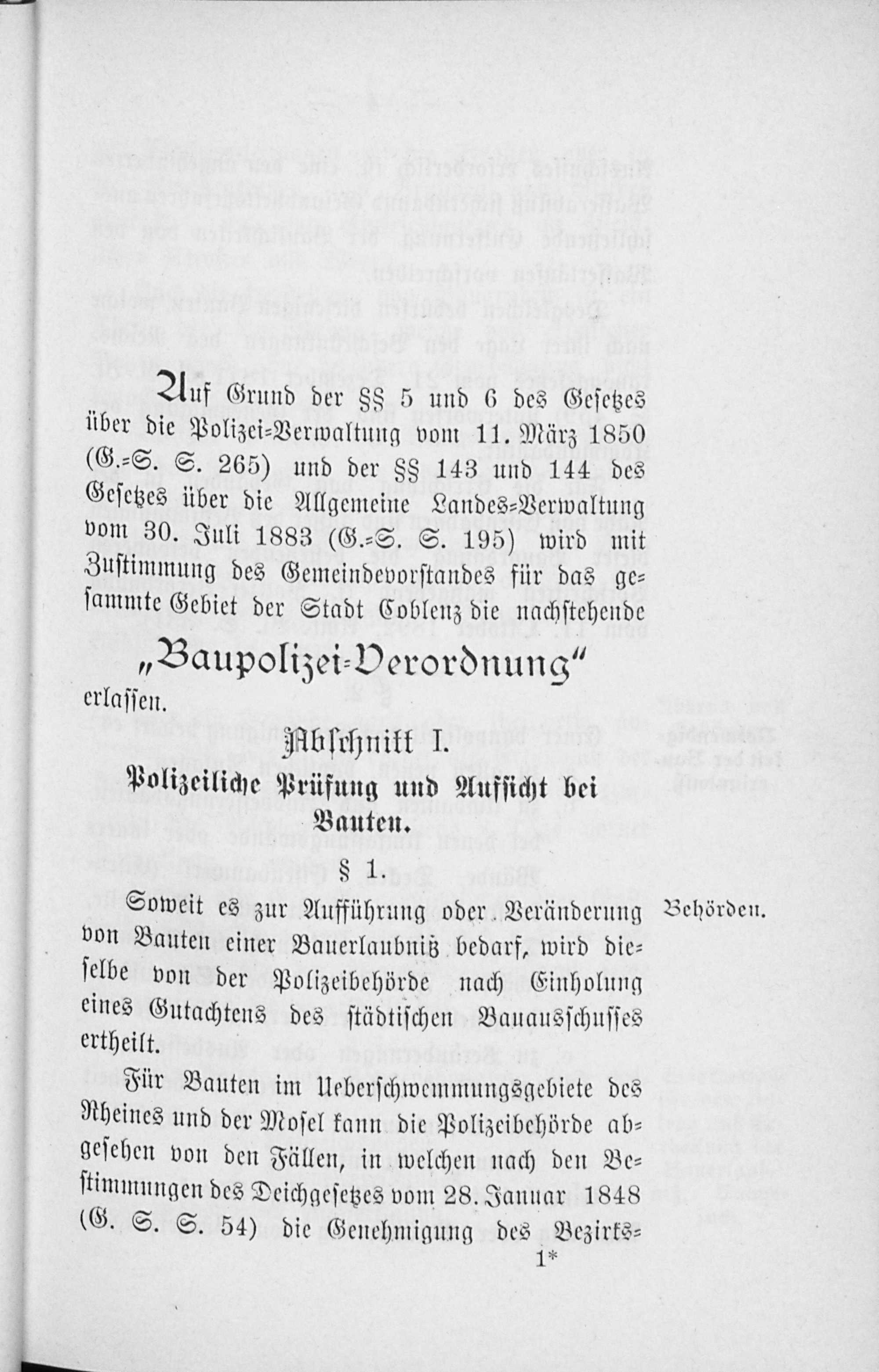Baupolizei-Verordnung für die Stadt Coblenz vom 1. Juni 1899