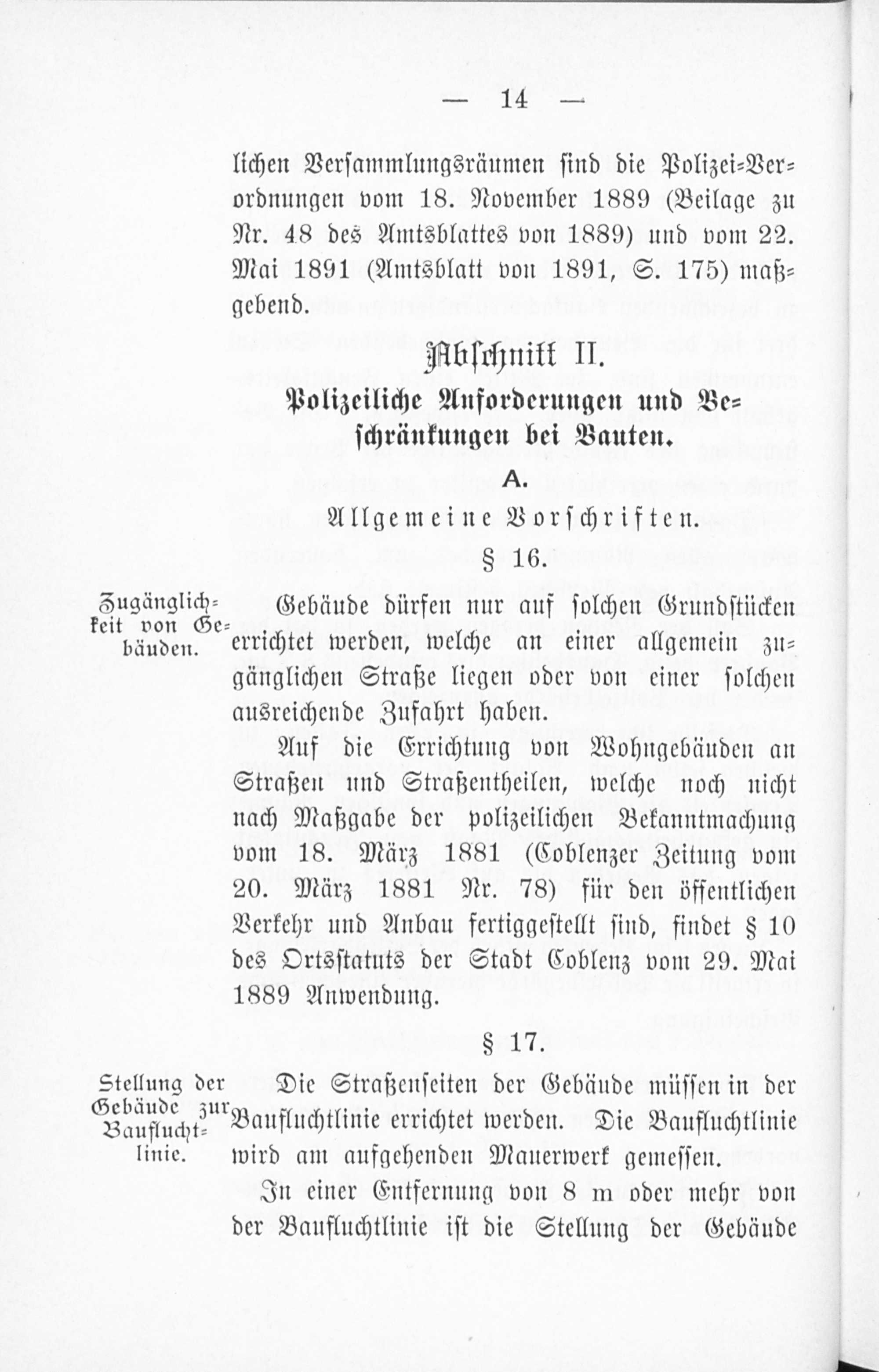 Baupolizei-Verordnung für die Stadt Coblenz vom 1. Juni 1899