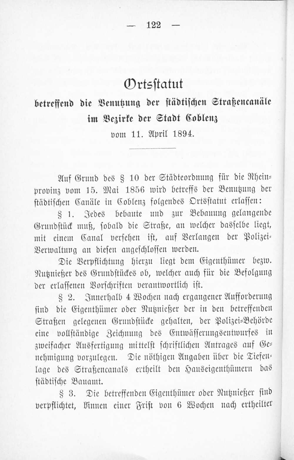 Baupolizei-Verordnung für die Stadt Coblenz vom 1. Juni 1899