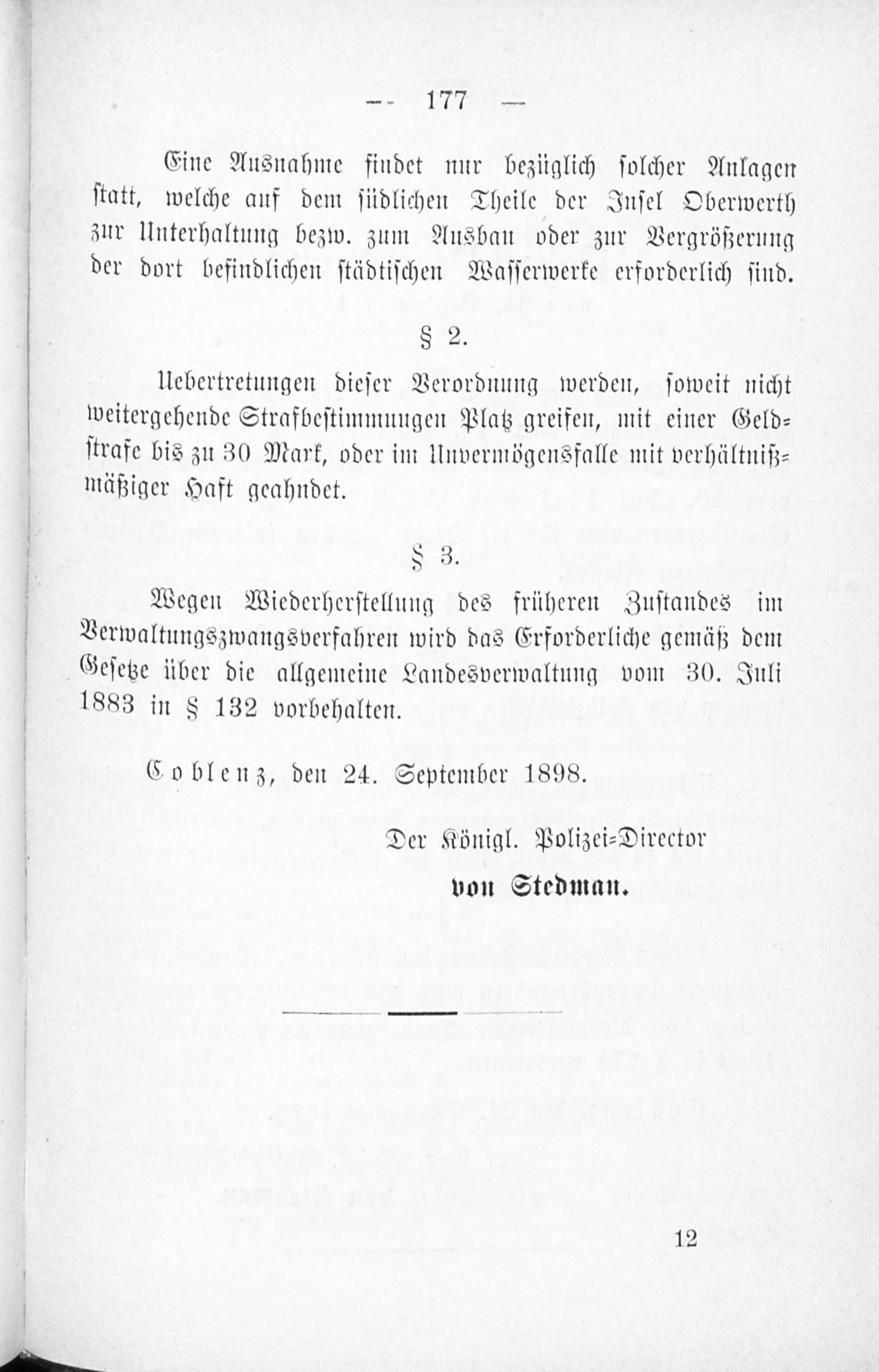 Baupolizei-Verordnung für die Stadt Coblenz vom 1. Juni 1899