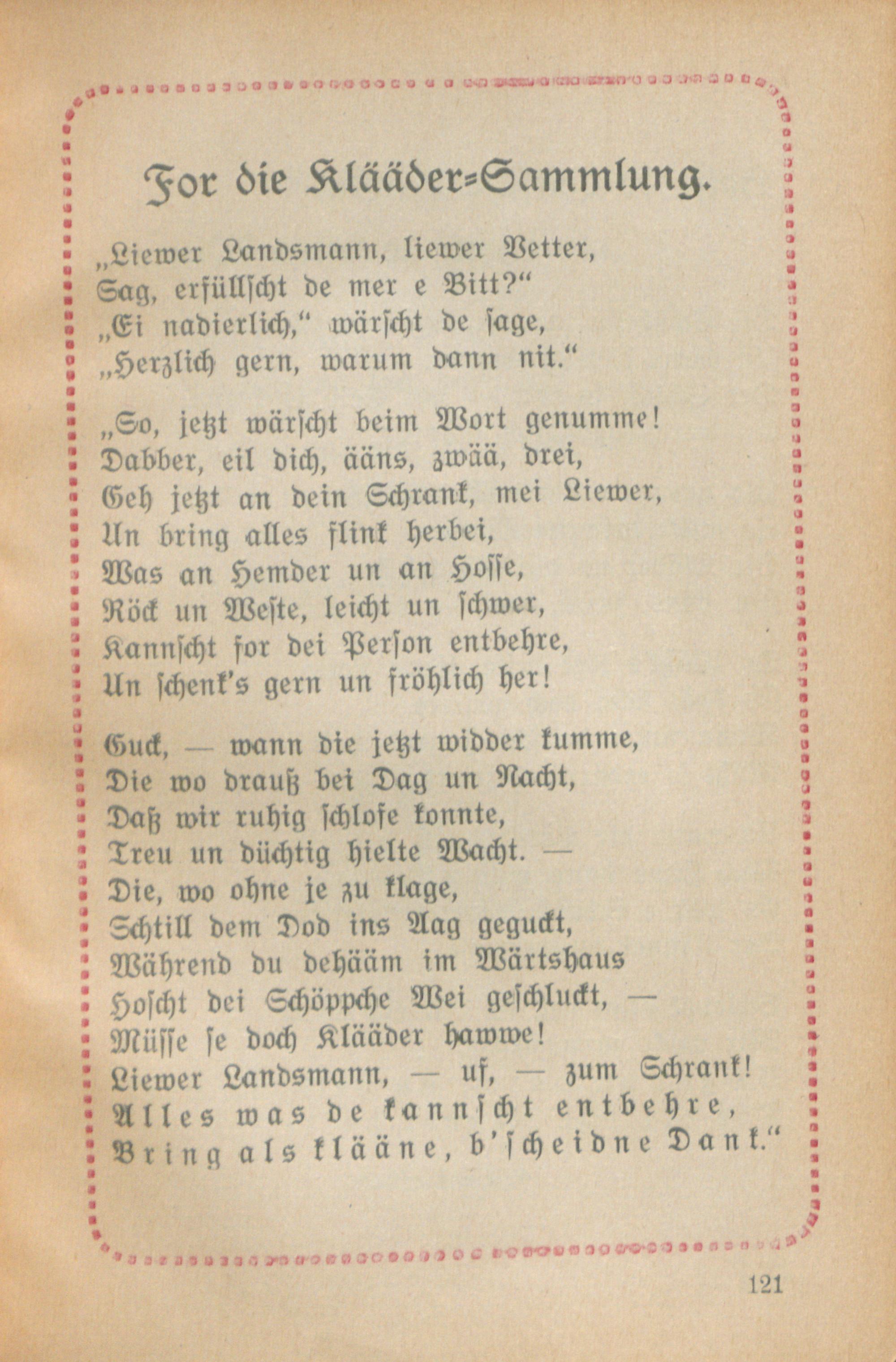 For die Klääder=Sammlung.