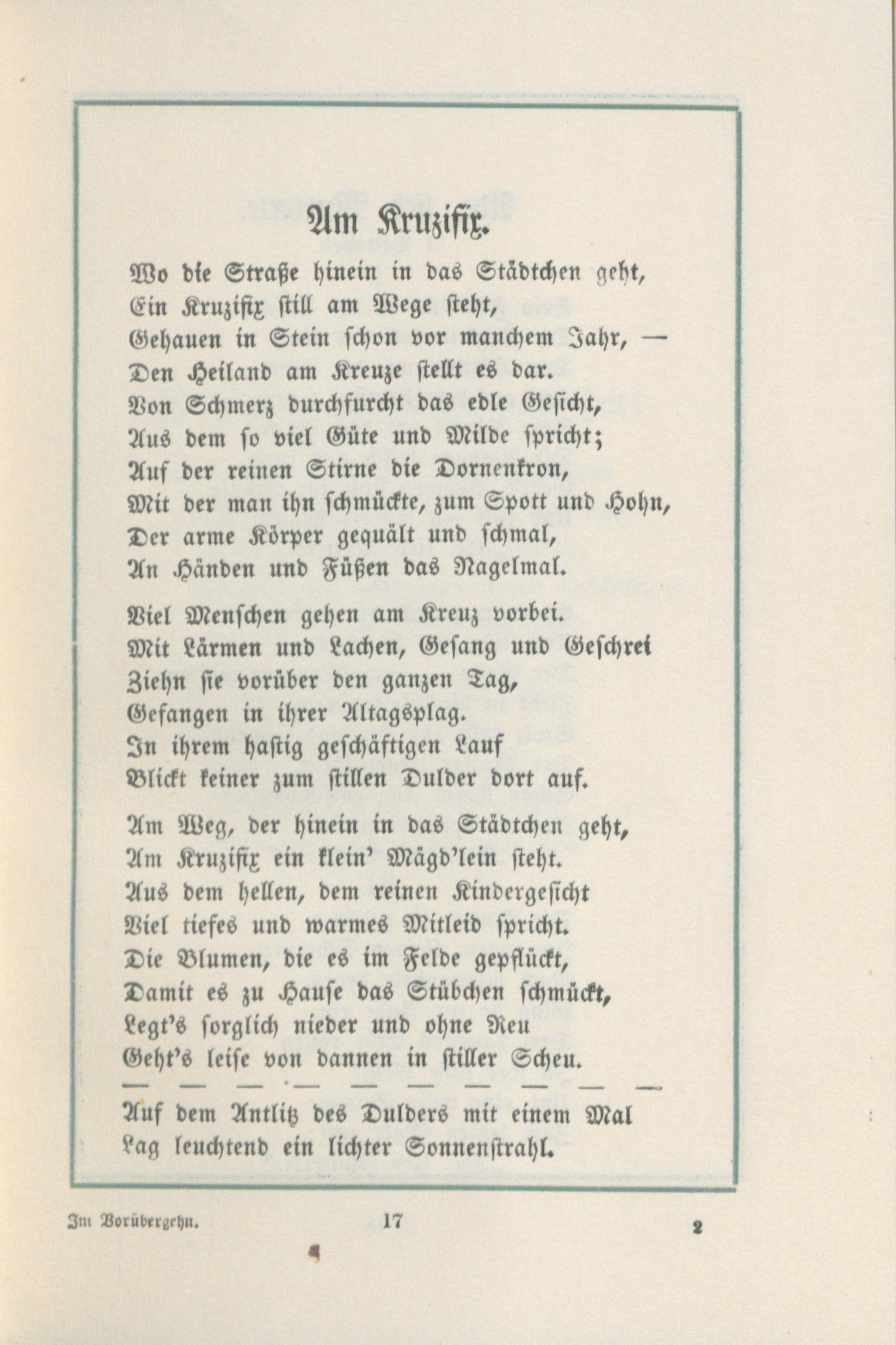 Im Vorübergehn : kleines Sammelwerkchen hochdeutscher Gedichte / von Lina Sommer