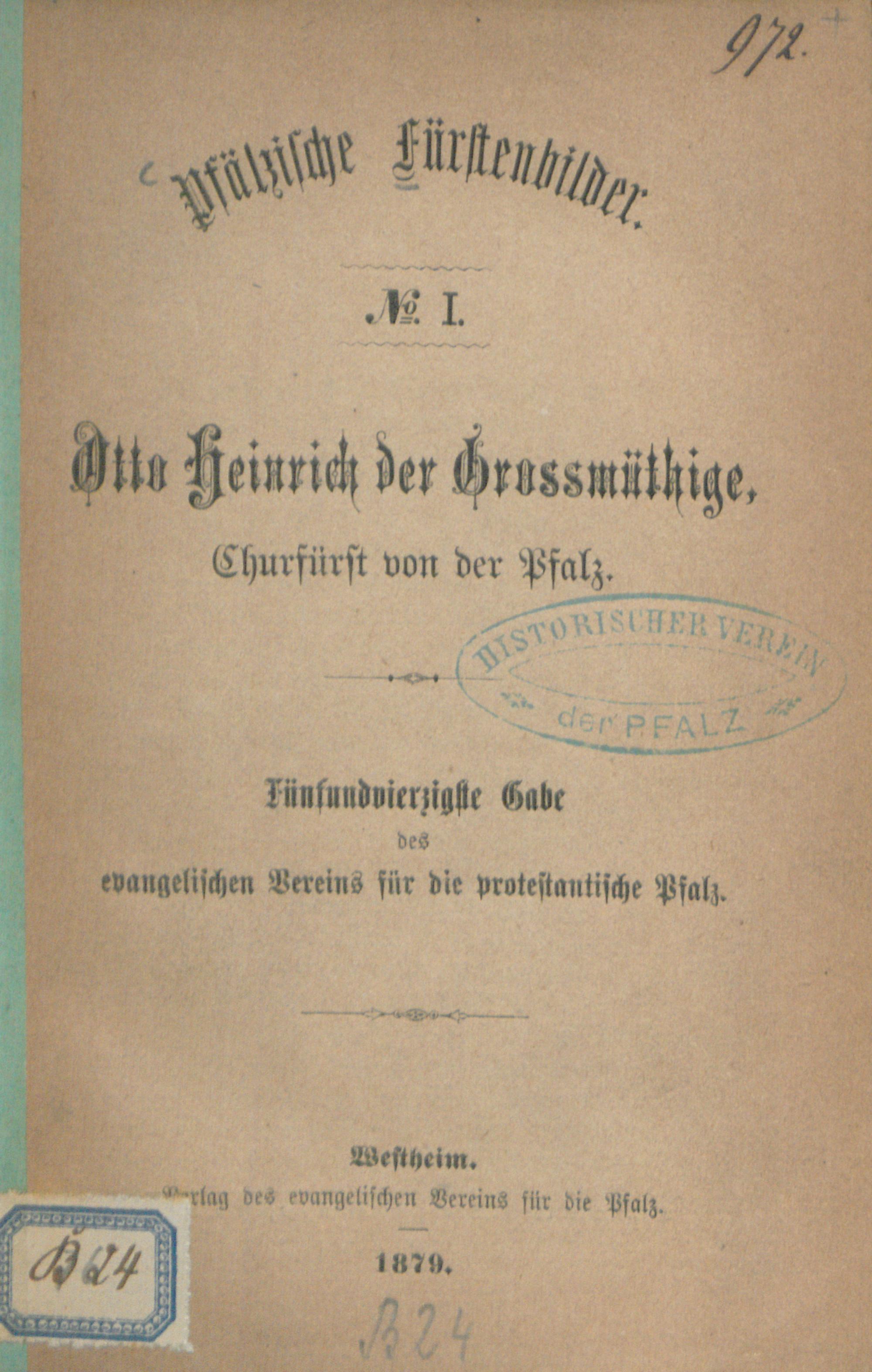 Otto Heinrich der Großmüthige, Churfürst von der Pfalz : Fünfundvierzigste Gabe des evang. Vereins für die prot. Pfalz