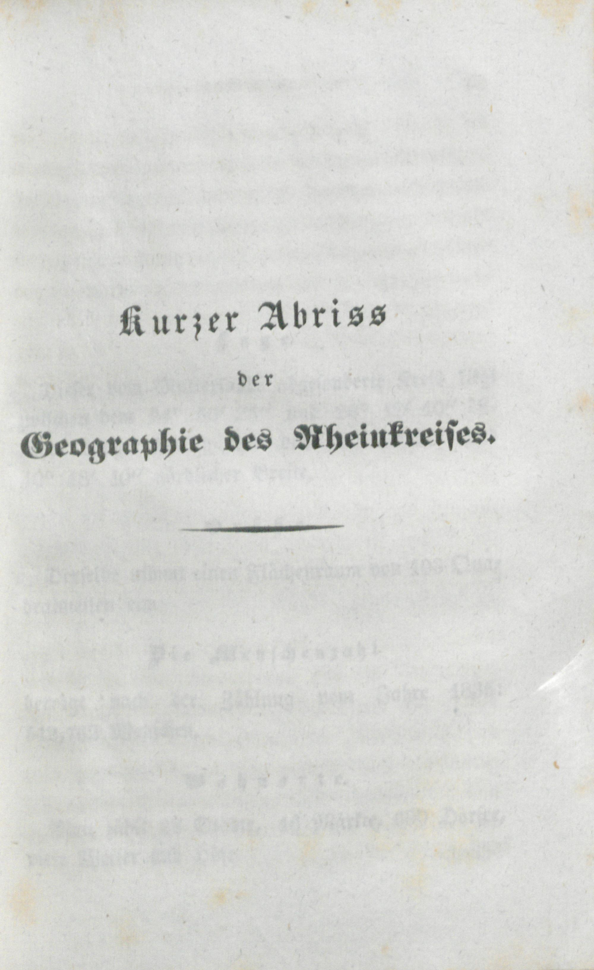 Kurzer Abriss der Geographie des Rheinkreises.