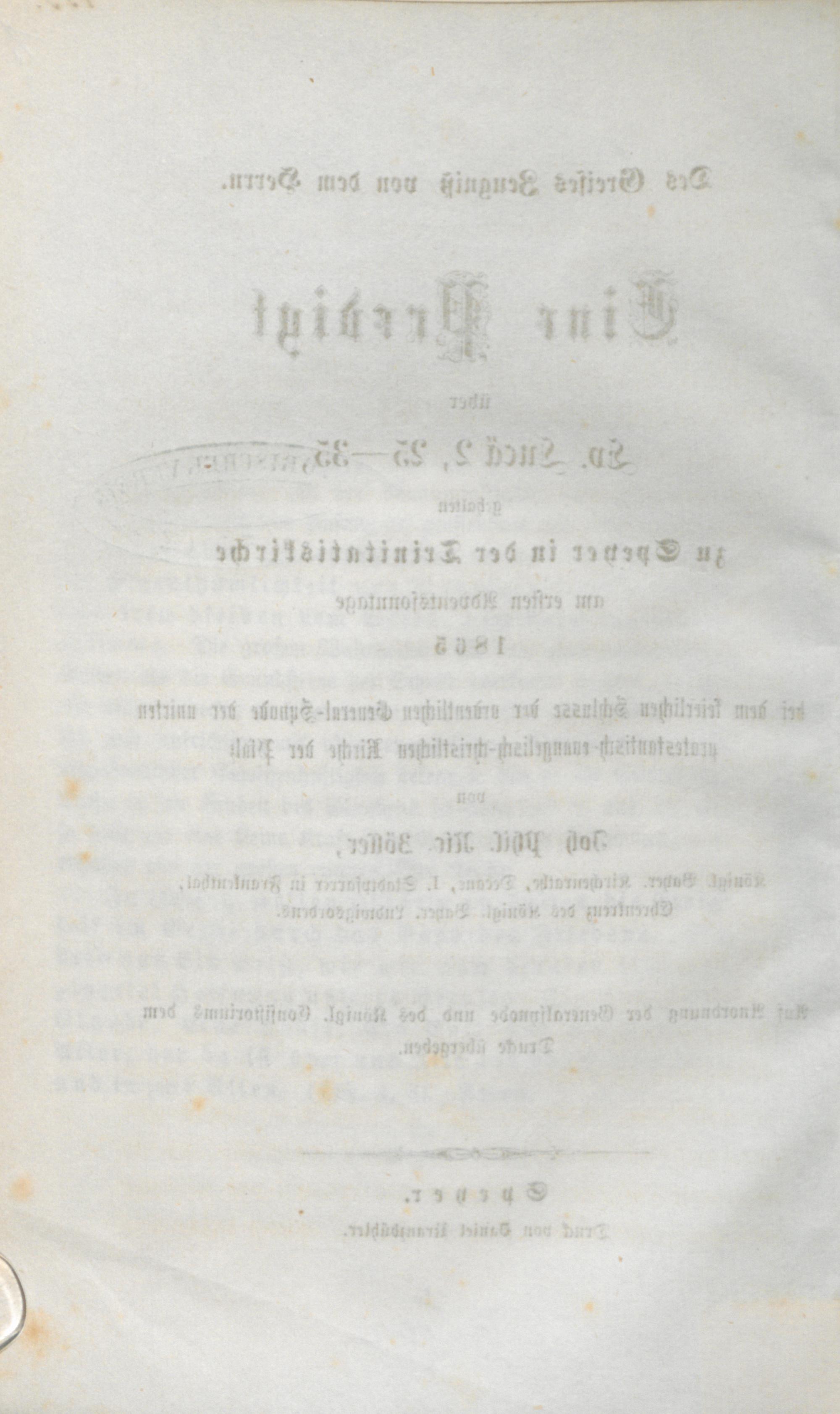 Des Greises Zeugniß von dem Herrn : eine Predigt über Ev. Lucä 2, 25 - 35, gehalten zu Speyer in der Trinitatiskirche am ersten Adventssonntage 1865 bei dem feierlichen Schlusse der ordentlichen General-Synode der unirten protestantisch-evangelisch-christlichen Kirche der Pfalz / von Joh. Phil. Nic. Zöller