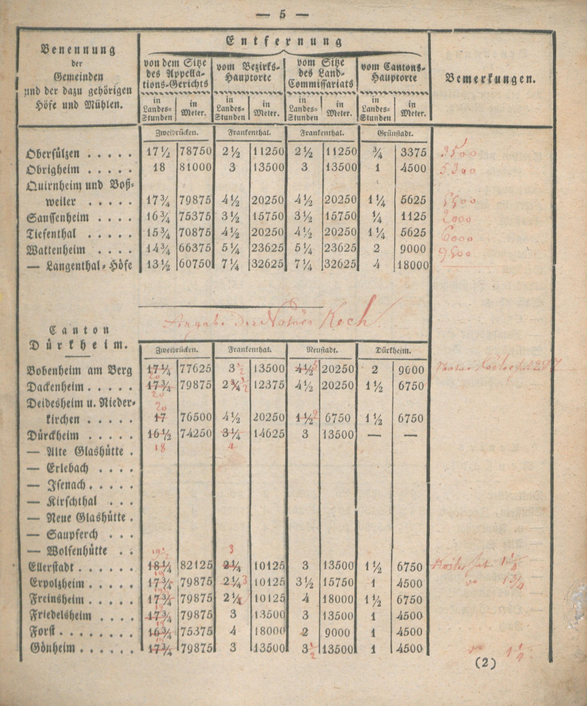 Verzeichniß der Entfernungen sämtlicher Gemeinden des Rhein-Kreises von dem Kantons-Hauptorte, dem Sitze des Land-Commissariats, des Bezirks- und Appellations-Gerichts