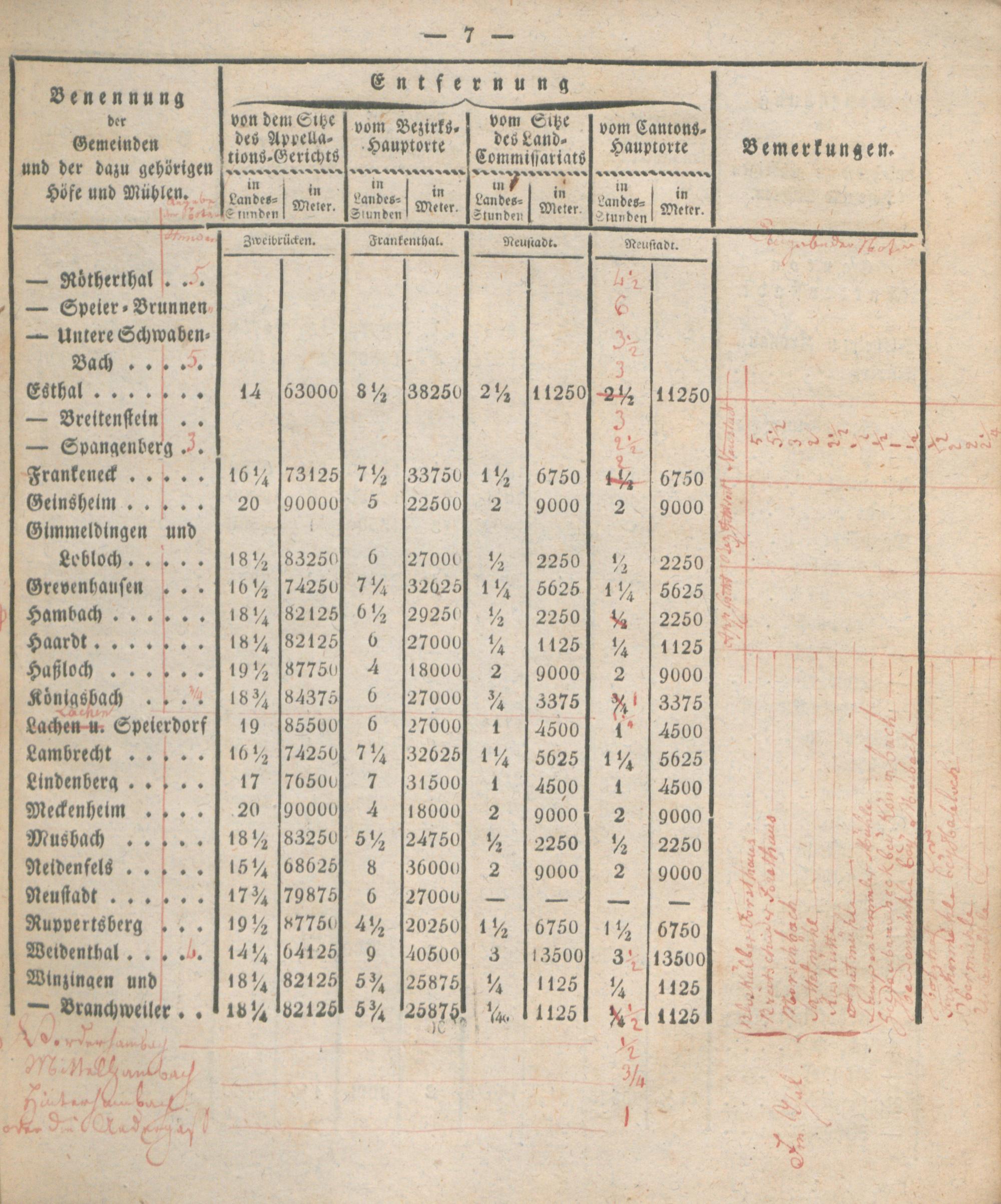 Verzeichniß der Entfernungen sämtlicher Gemeinden des Rhein-Kreises von dem Kantons-Hauptorte, dem Sitze des Land-Commissariats, des Bezirks- und Appellations-Gerichts