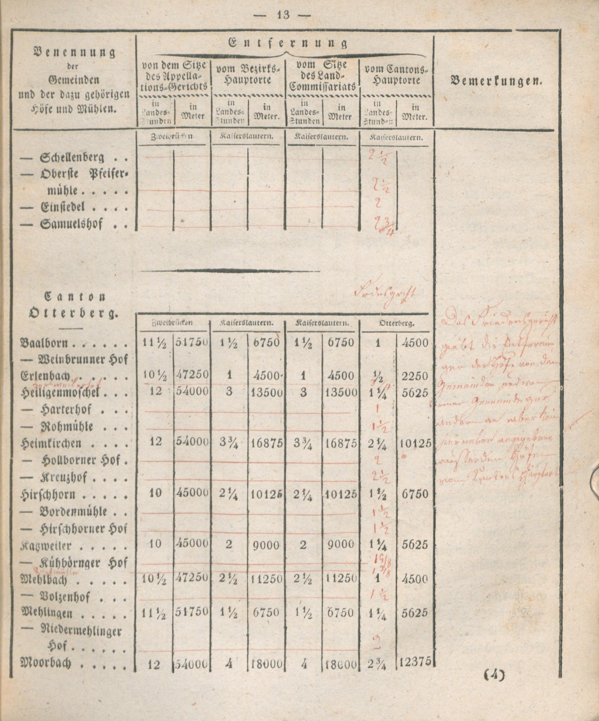 Verzeichniß der Entfernungen sämtlicher Gemeinden des Rhein-Kreises von dem Kantons-Hauptorte, dem Sitze des Land-Commissariats, des Bezirks- und Appellations-Gerichts