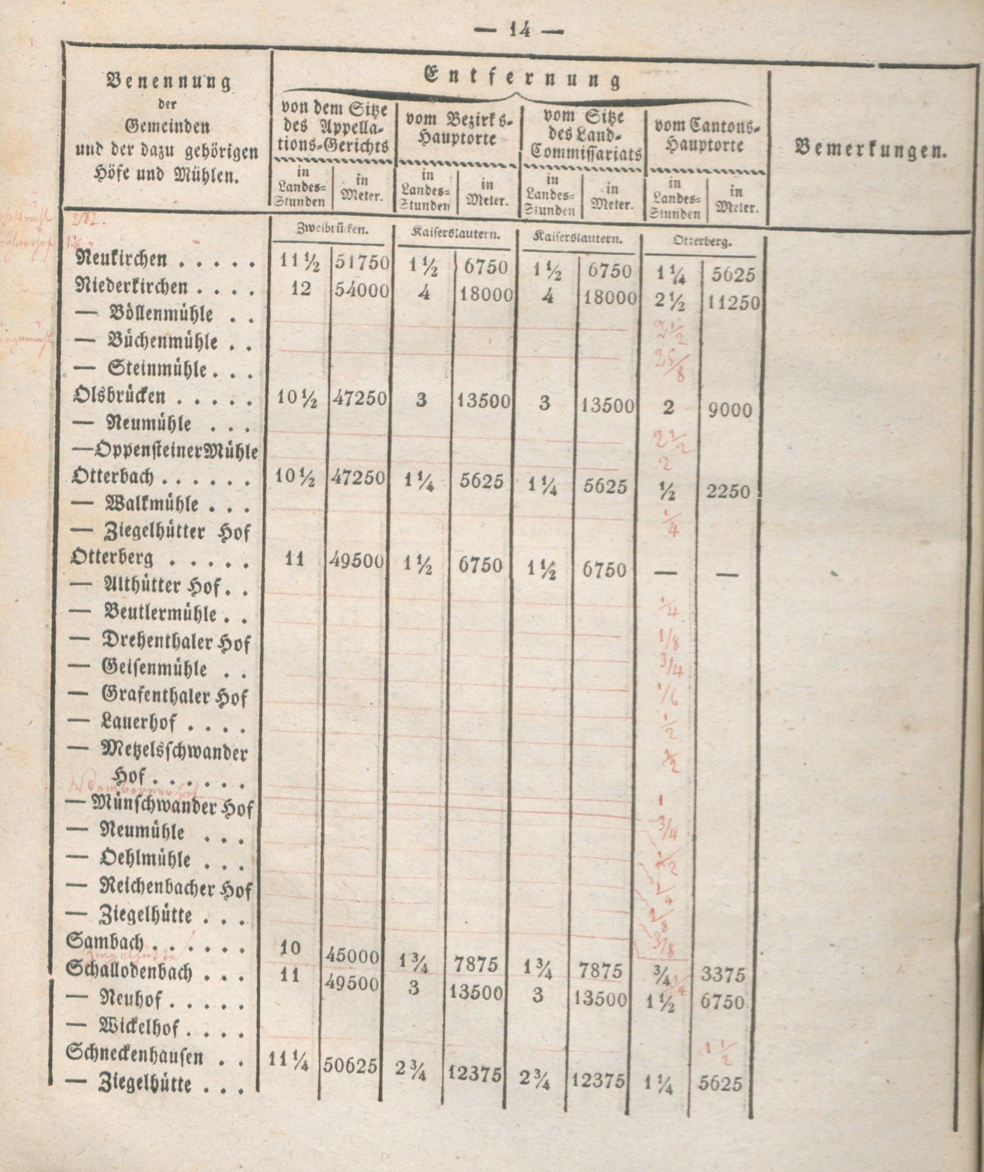 Verzeichniß der Entfernungen sämtlicher Gemeinden des Rhein-Kreises von dem Kantons-Hauptorte, dem Sitze des Land-Commissariats, des Bezirks- und Appellations-Gerichts
