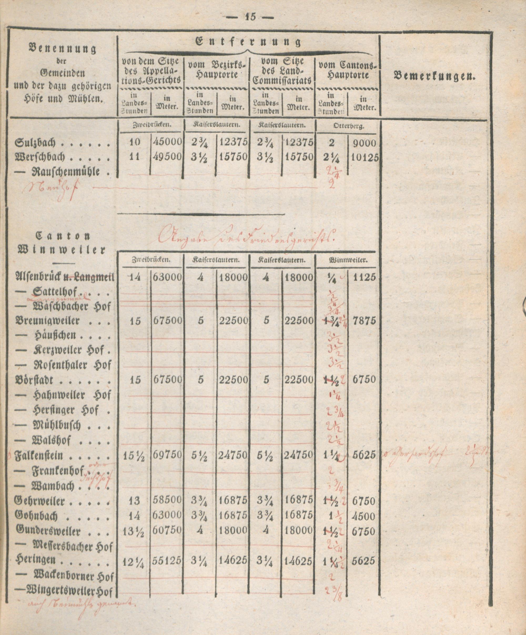 Verzeichniß der Entfernungen sämtlicher Gemeinden des Rhein-Kreises von dem Kantons-Hauptorte, dem Sitze des Land-Commissariats, des Bezirks- und Appellations-Gerichts