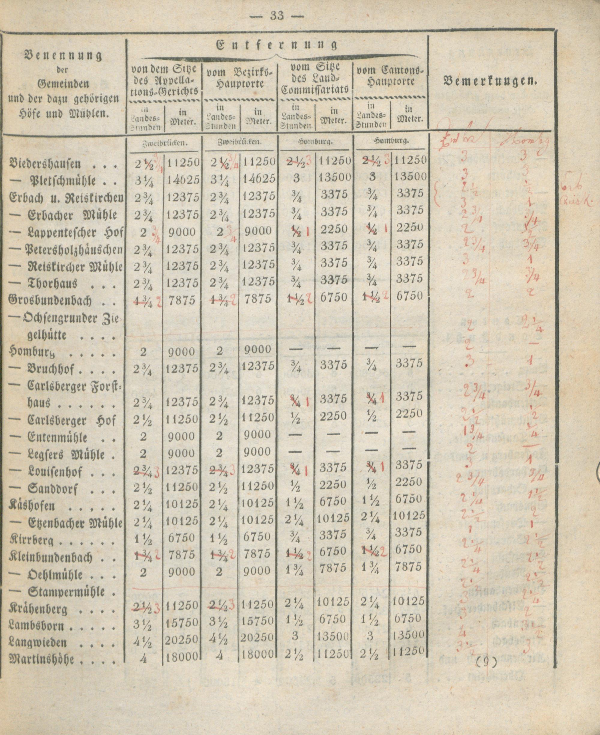 Verzeichniß der Entfernungen sämtlicher Gemeinden des Rhein-Kreises von dem Kantons-Hauptorte, dem Sitze des Land-Commissariats, des Bezirks- und Appellations-Gerichts