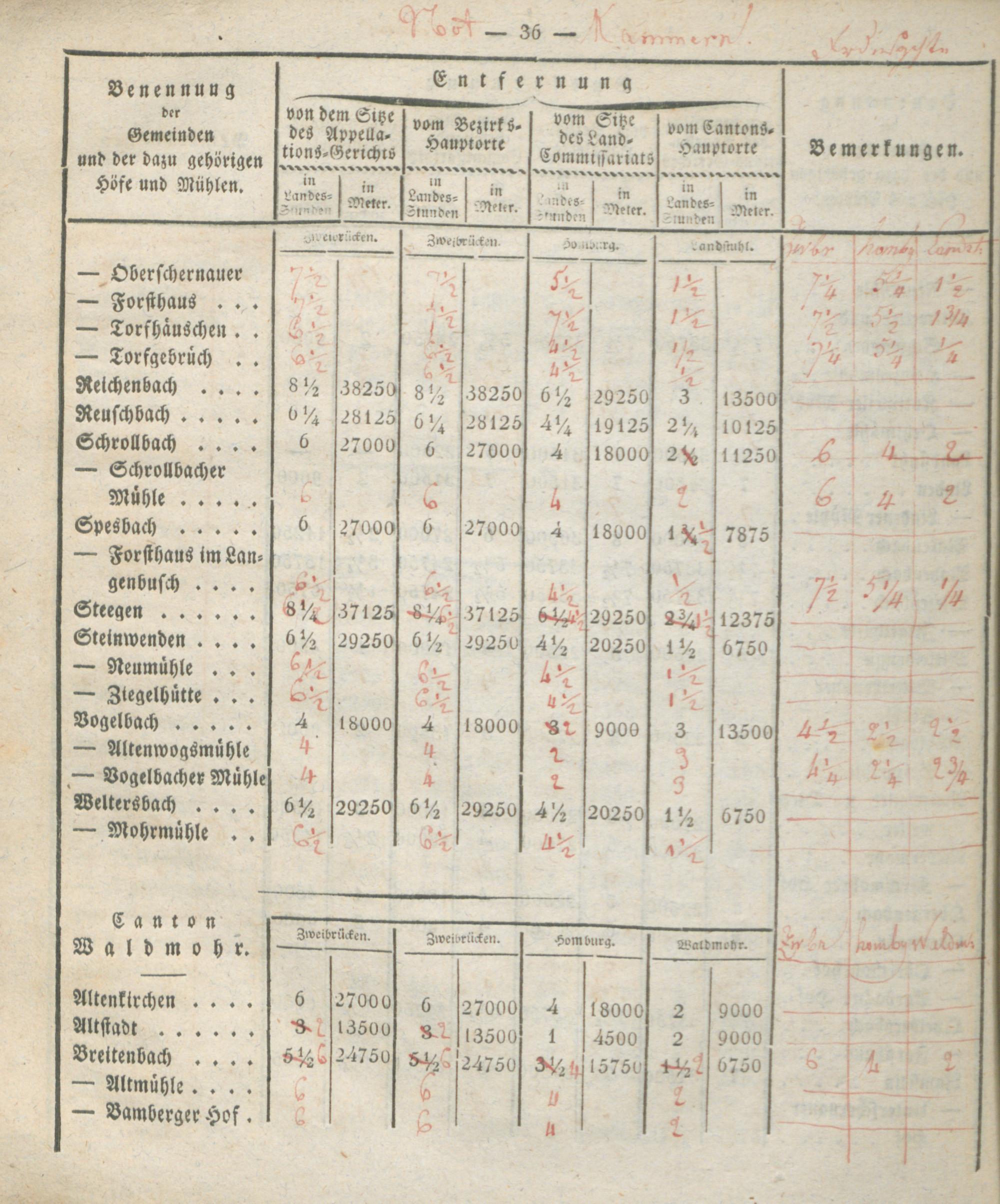 Verzeichniß der Entfernungen sämtlicher Gemeinden des Rhein-Kreises von dem Kantons-Hauptorte, dem Sitze des Land-Commissariats, des Bezirks- und Appellations-Gerichts