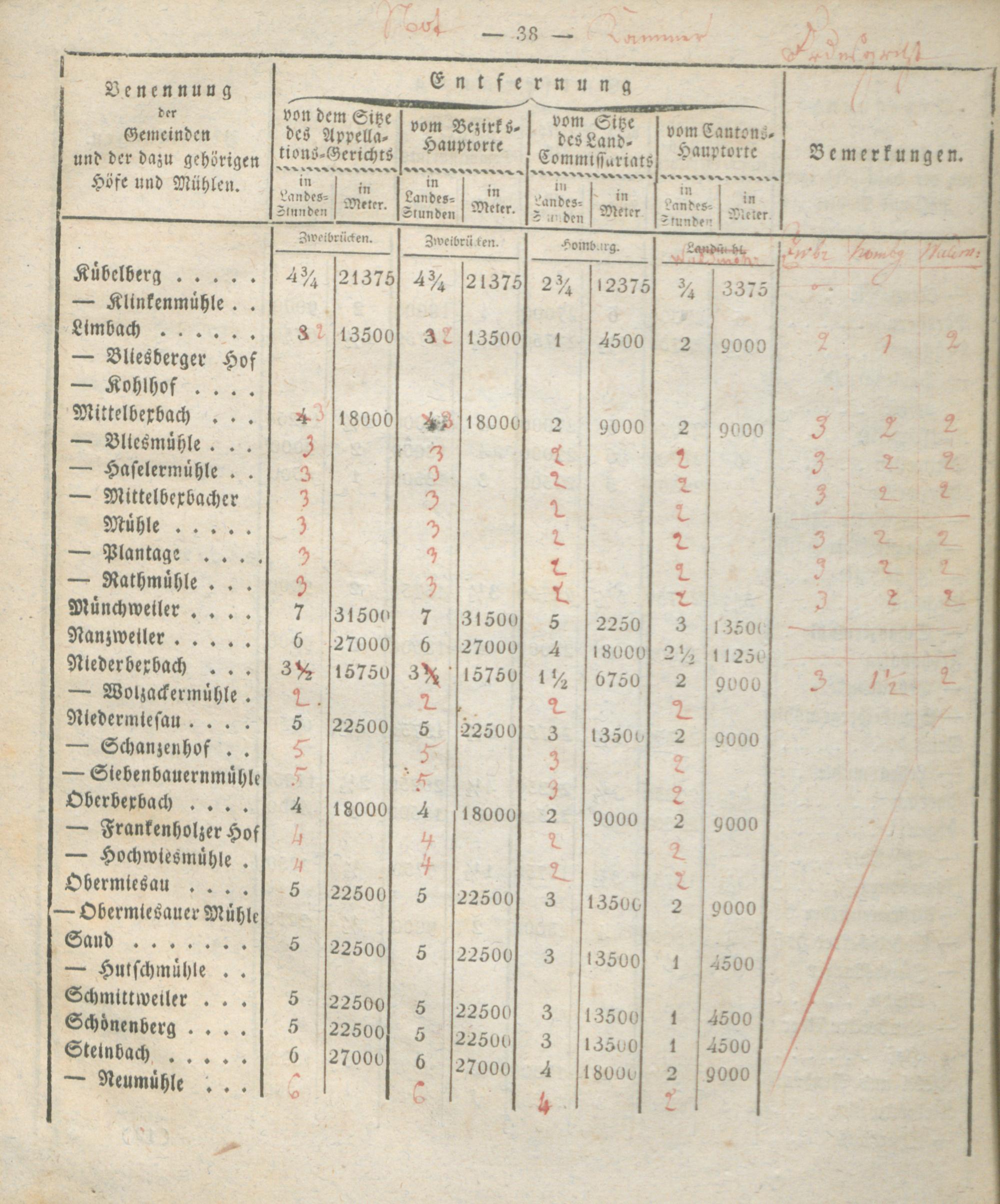 Verzeichniß der Entfernungen sämtlicher Gemeinden des Rhein-Kreises von dem Kantons-Hauptorte, dem Sitze des Land-Commissariats, des Bezirks- und Appellations-Gerichts