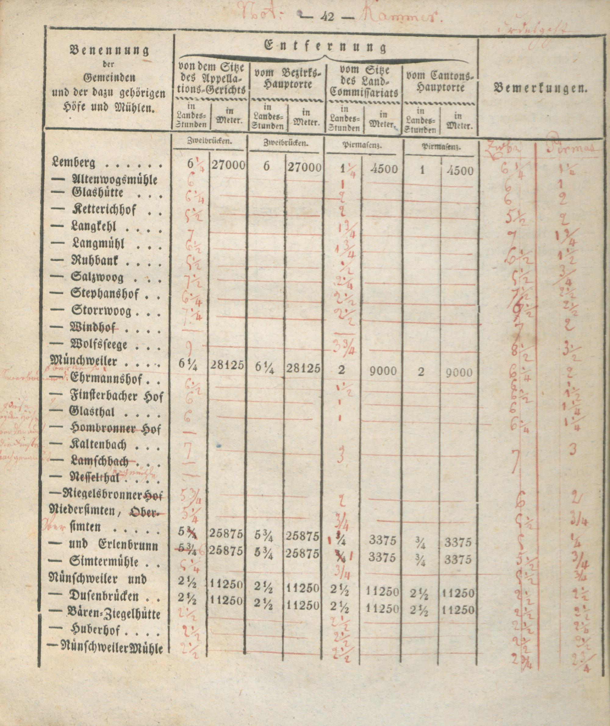 Verzeichniß der Entfernungen sämtlicher Gemeinden des Rhein-Kreises von dem Kantons-Hauptorte, dem Sitze des Land-Commissariats, des Bezirks- und Appellations-Gerichts