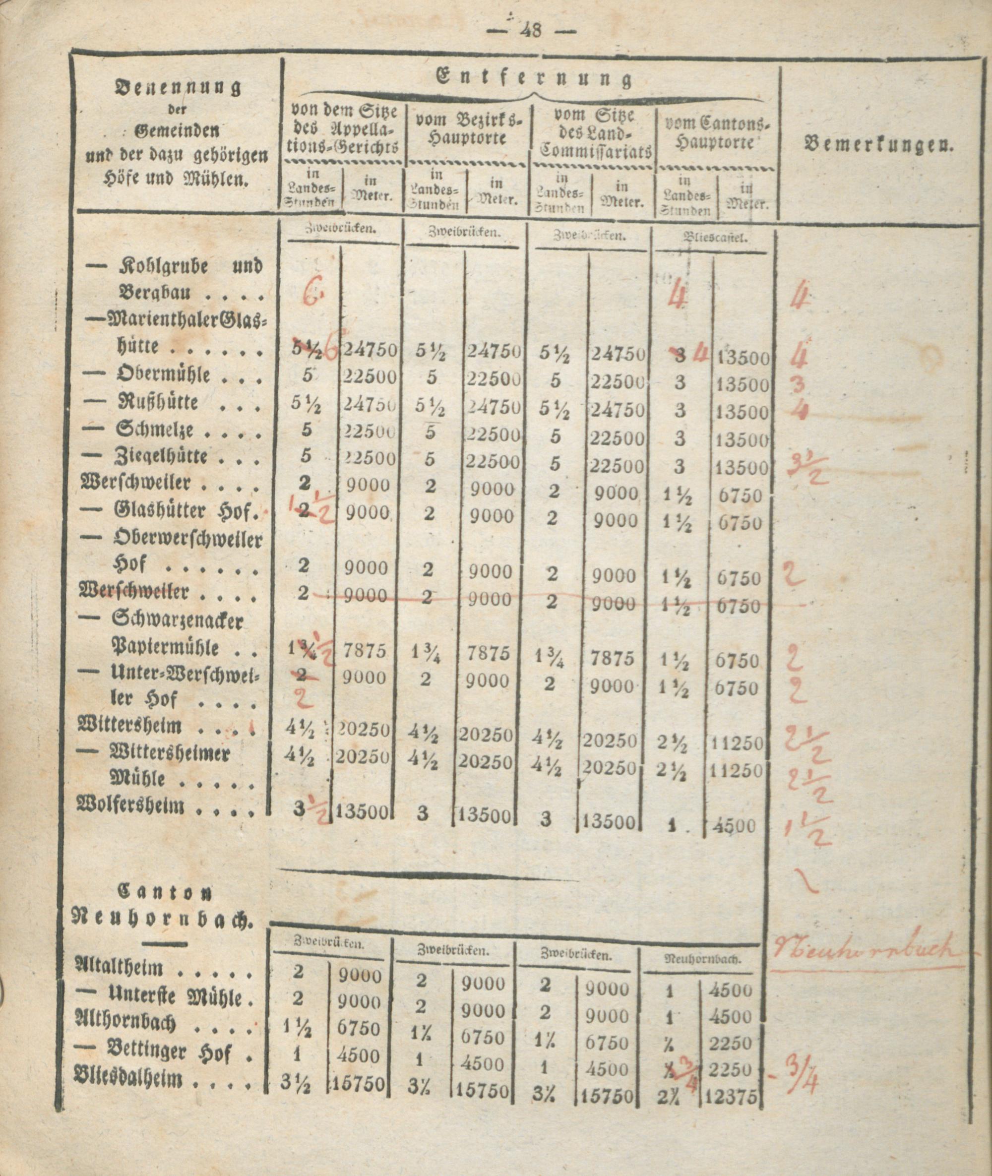 Verzeichniß der Entfernungen sämtlicher Gemeinden des Rhein-Kreises von dem Kantons-Hauptorte, dem Sitze des Land-Commissariats, des Bezirks- und Appellations-Gerichts