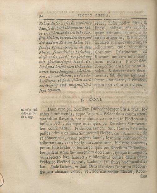 Bvrcardi Gotthelffii Struvii ...Formvla Svccessionis Serenissimae Domvs Palatinae Qva Insimvl Modernae Svccessionvm Controversiae Simmerensis, Veldentina Et Bipontina Envcleantvr Secvndvm Pacta, Dispositiones Et Observantiam ...