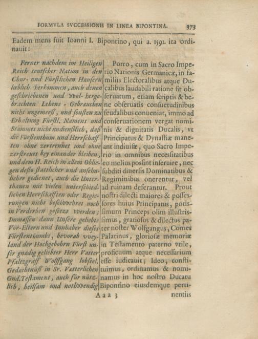 Bvrcardi Gotthelffii Struvii ...Formvla Svccessionis Serenissimae Domvs Palatinae...