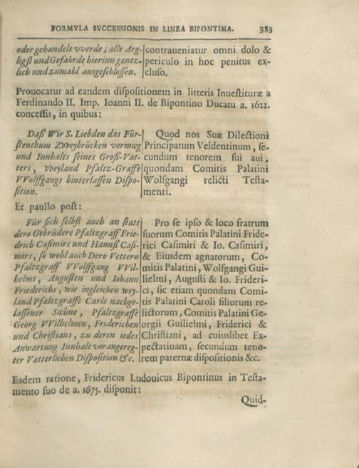 Bvrcardi Gotthelffii Struvii ...Formvla Svccessionis Serenissimae Domvs Palatinae Qva Insimvl Modernae Svccessionvm Controversiae Simmerensis, Veldentina Et Bipontina Envcleantvr Secvndvm Pacta, Dispositiones Et Observantiam ...