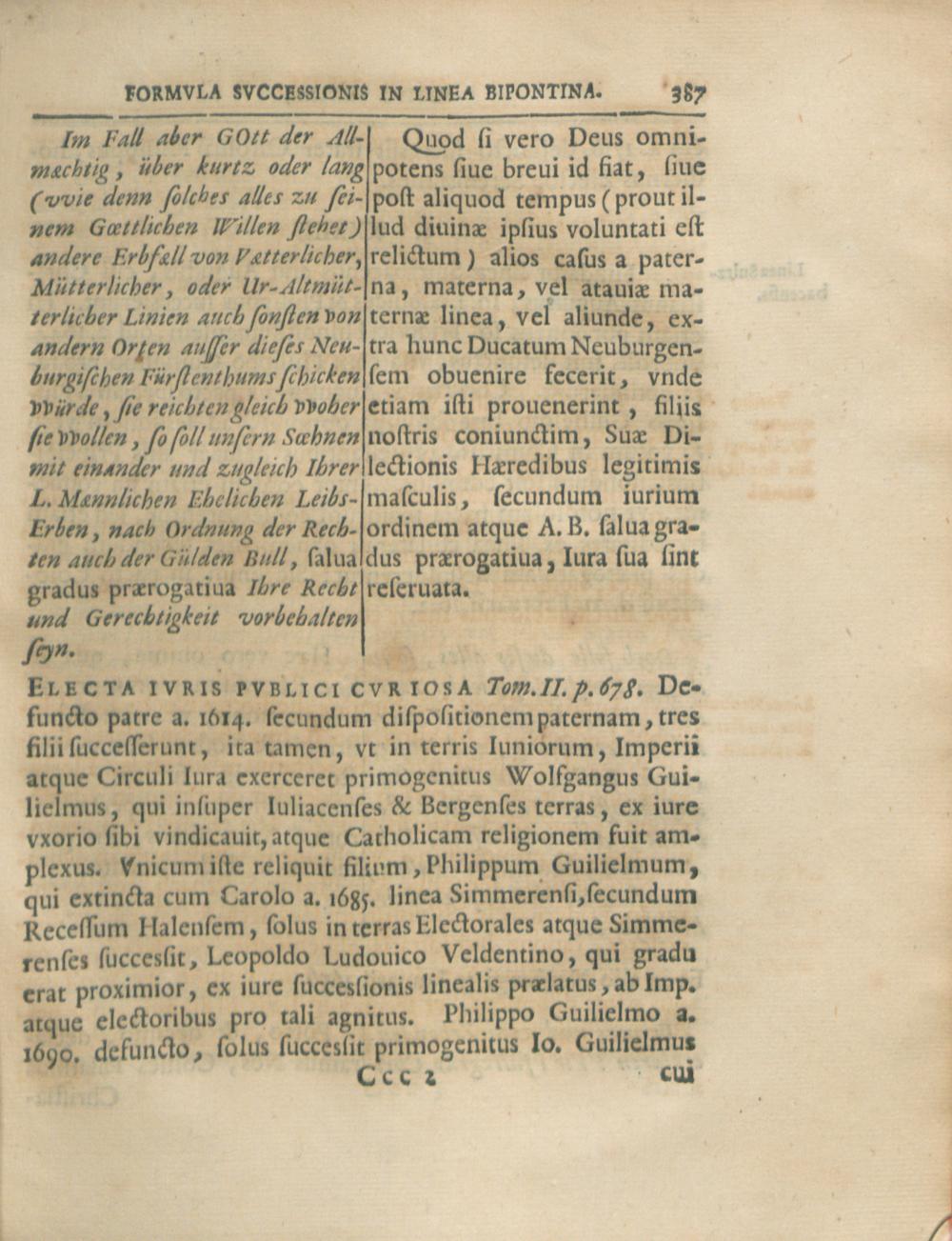 Bvrcardi Gotthelffii Struvii ...Formvla Svccessionis Serenissimae Domvs Palatinae Qva Insimvl Modernae Svccessionvm Controversiae Simmerensis, Veldentina Et Bipontina Envcleantvr Secvndvm Pacta, Dispositiones Et Observantiam ...