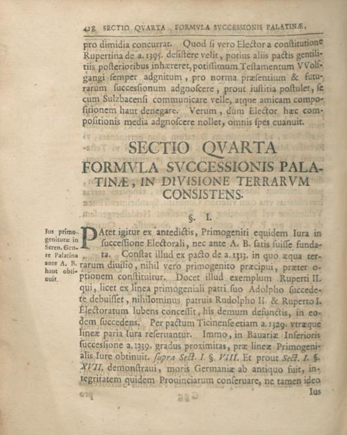 Bvrcardi Gotthelffii Struvii ...Formvla Svccessionis Serenissimae Domvs Palatinae Qva Insimvl Modernae Svccessionvm Controversiae Simmerensis, Veldentina Et Bipontina Envcleantvr Secvndvm Pacta, Dispositiones Et Observantiam ...