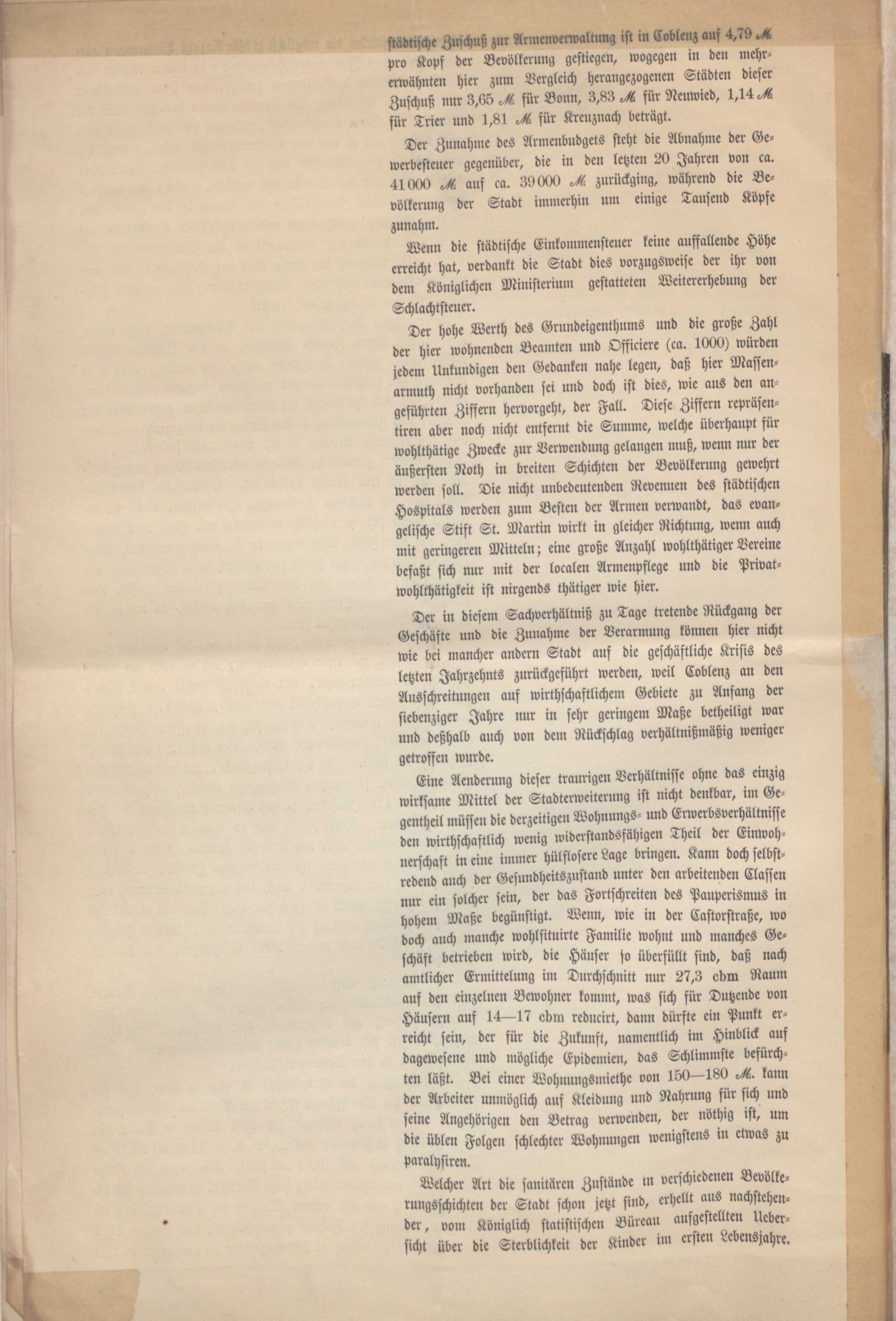 Eingabe der Handelskammer zu Coblenz an das Kgl. Ministerium für Handel und Gewerbe, betreffend die Gewerbs- und Handelsverhältnisse in der Stadt Coblenz