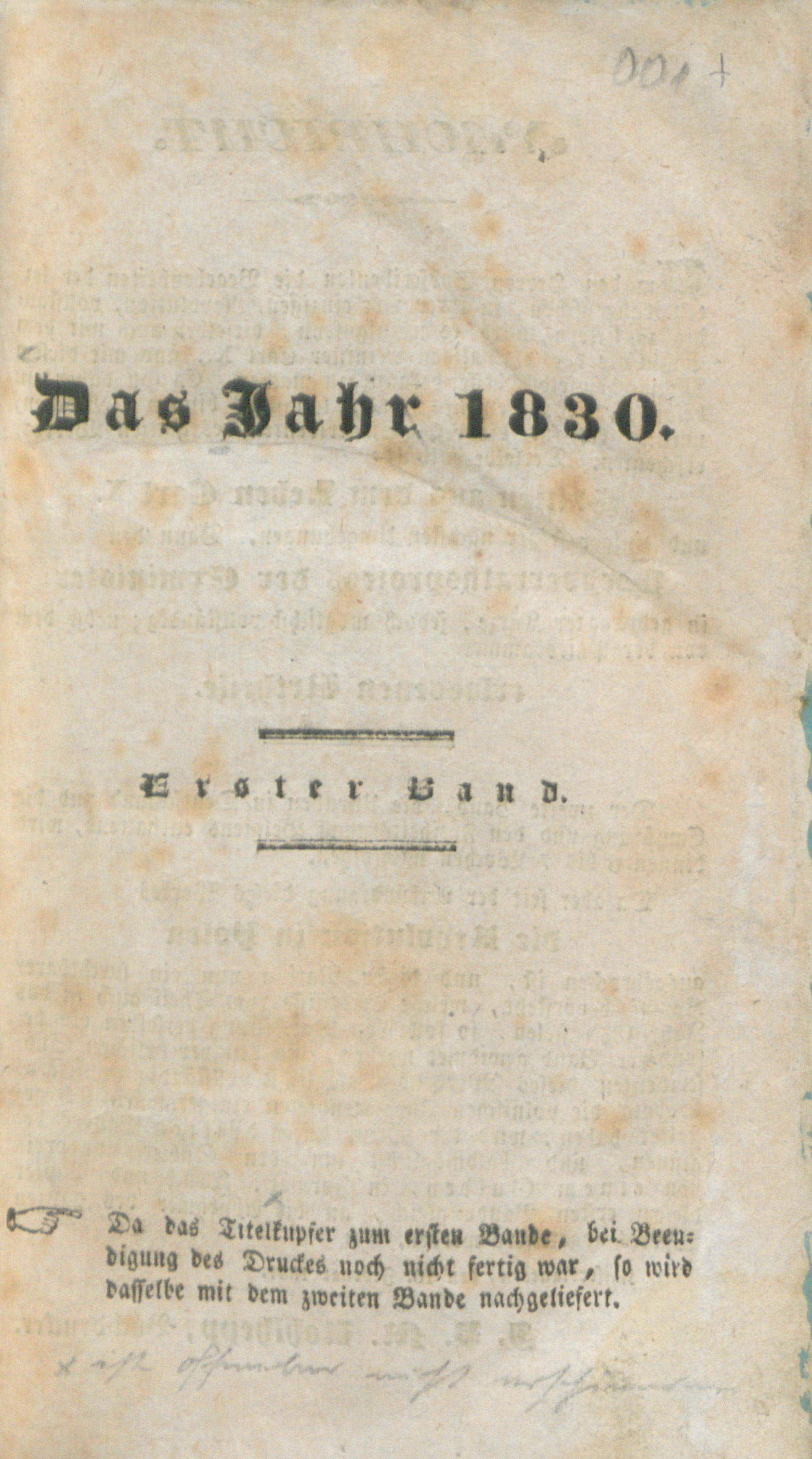 1 (1831) Das Jahr 1830 : Darstellung der merkwürdigsten politischen Ereignisse im Jahre 1830