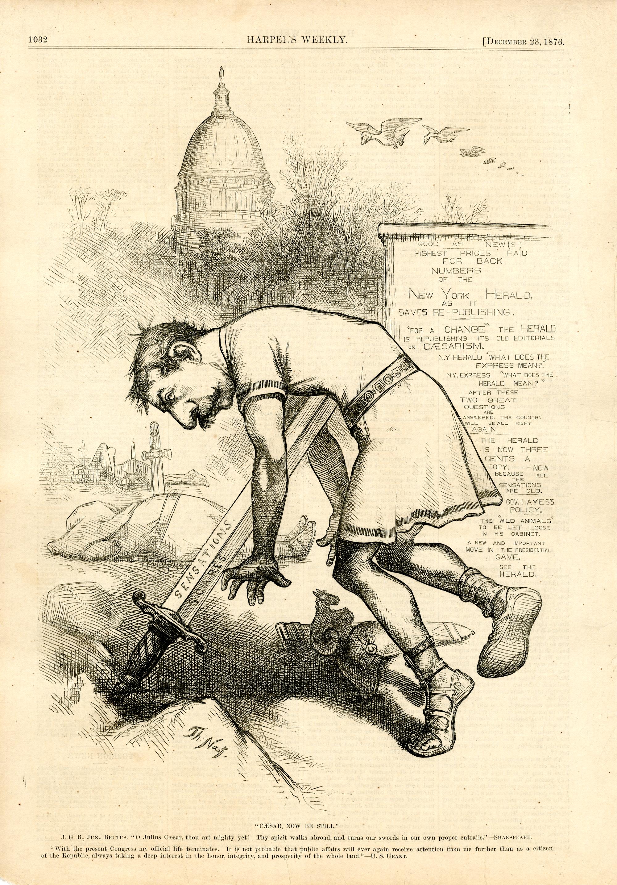 "Caesar, now be still." [Anschließend folgt ein Textblock] : Bennett Jr., der als Brutus dargestellt wird, stürzt sich in ein Schwert / Th. Nast