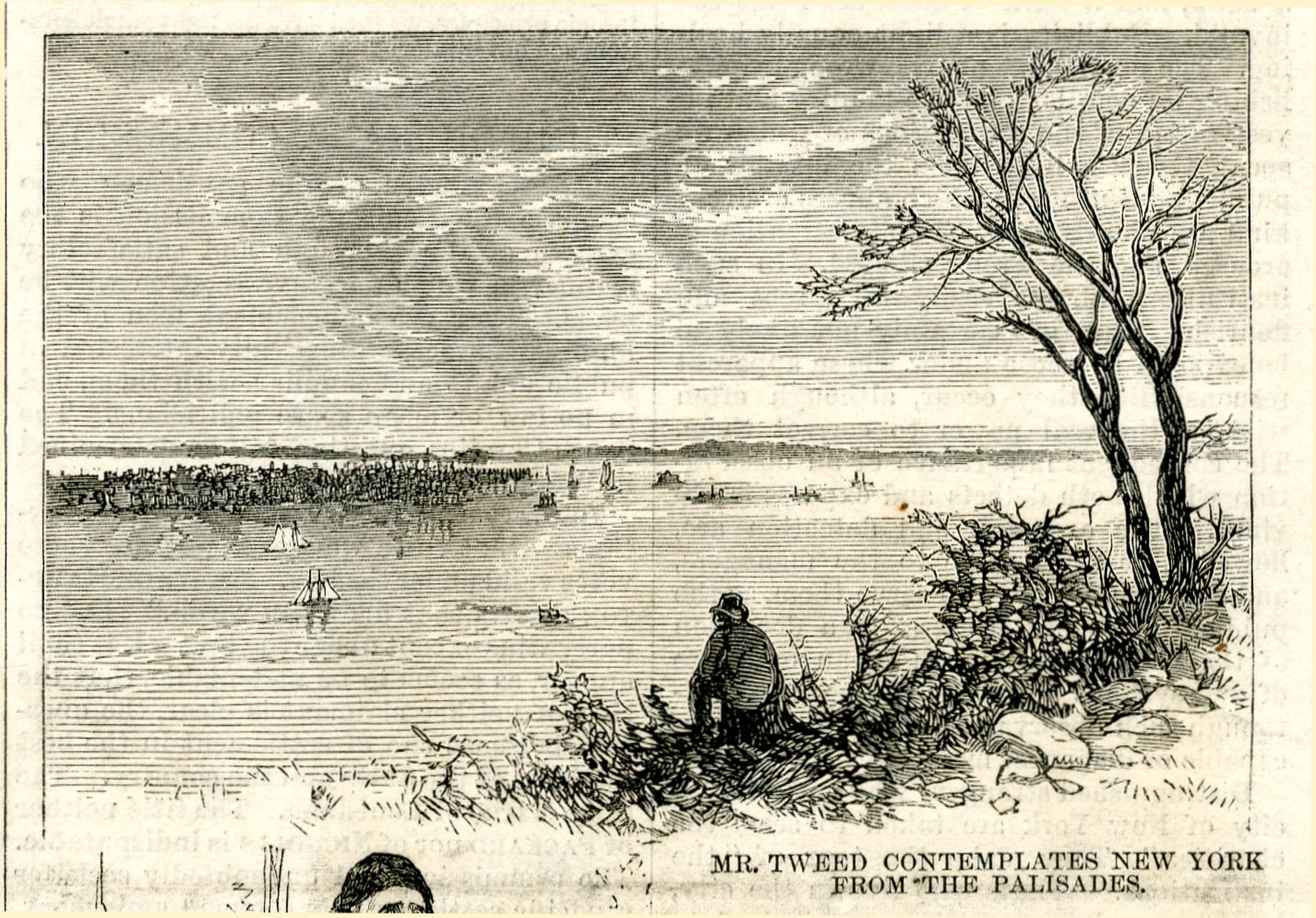 Mr. Tweed contemplates New York from the palisades : Tweed betrachtet vom Strand aus New York / [Thomas Nast]