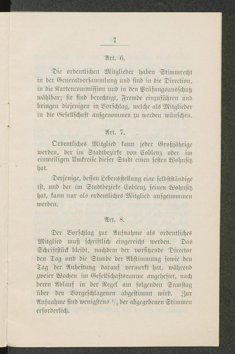 Haus-Ordnung für die Gesellschaft Casino zu Coblenz.