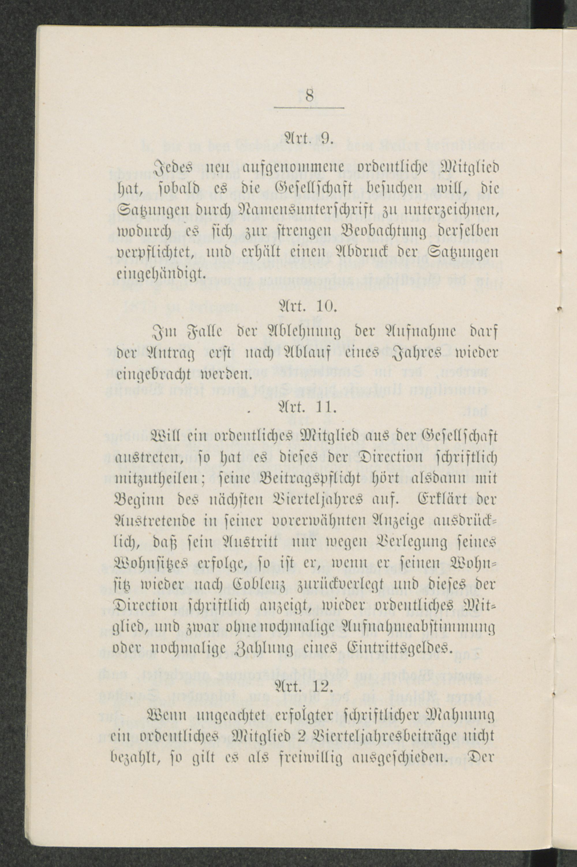 Haus-Ordnung für die Gesellschaft Casino zu Coblenz.