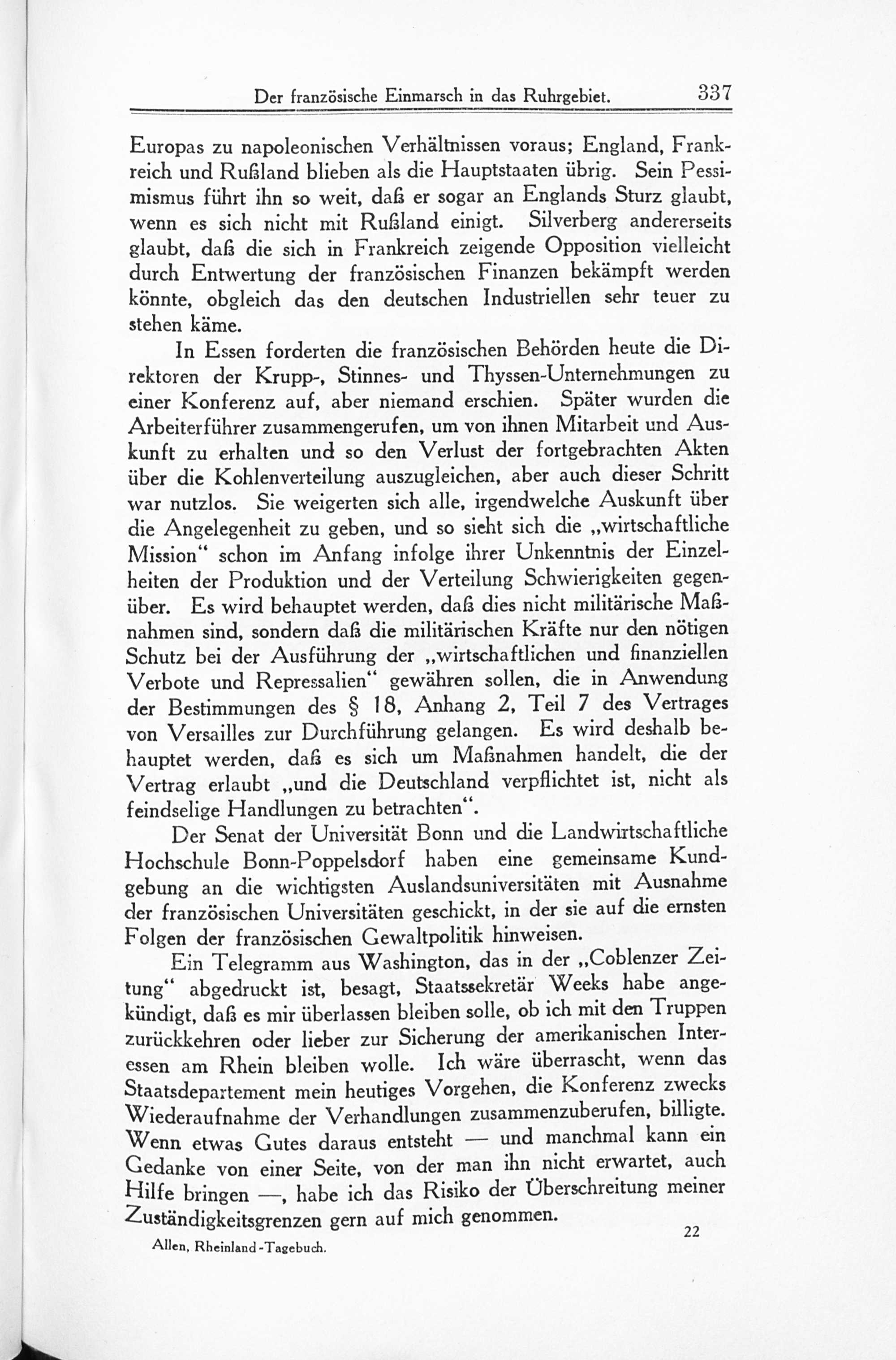 Zwanzigstes Kapitel. Der französische Einmarsch in das Ruhrgebiet.