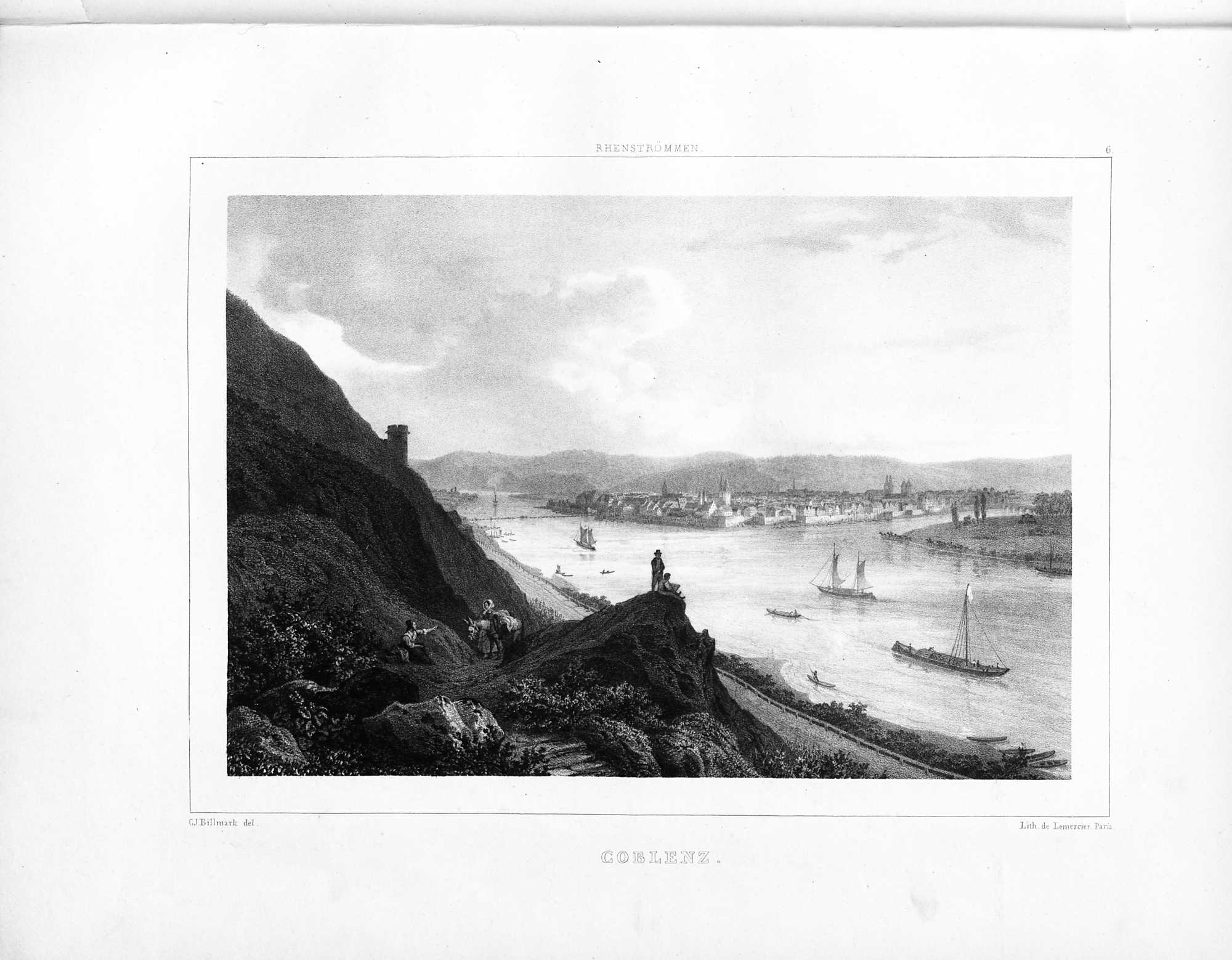 Rhenströmmen från Cöln till Mainz : Tjugo Vuer Tecknade Efter Naturen / Och Lithographierade I Paris Af C. J. Billmark