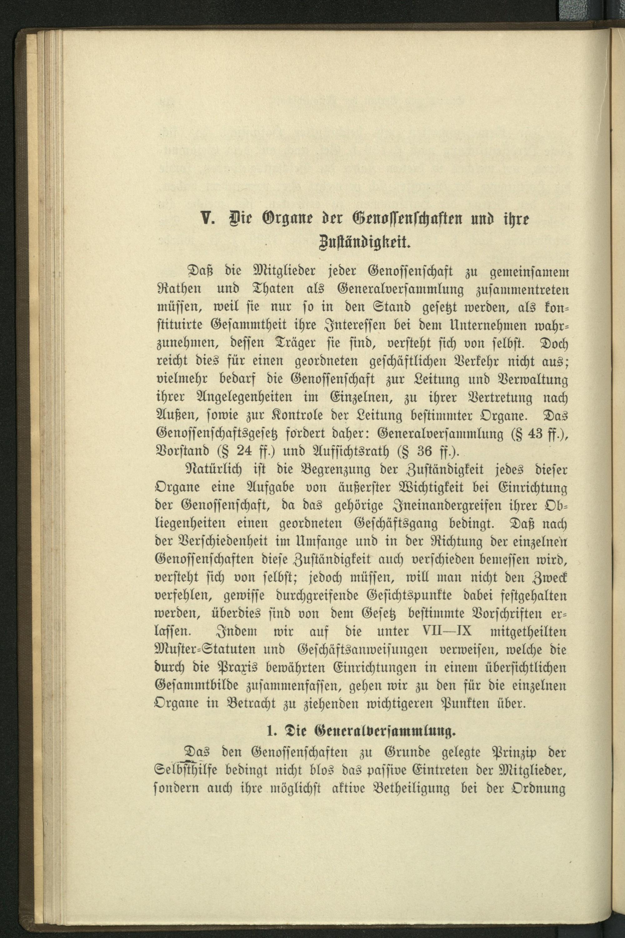 V. Die Organe der Genossenschaften und ihre Zuständigkeit.