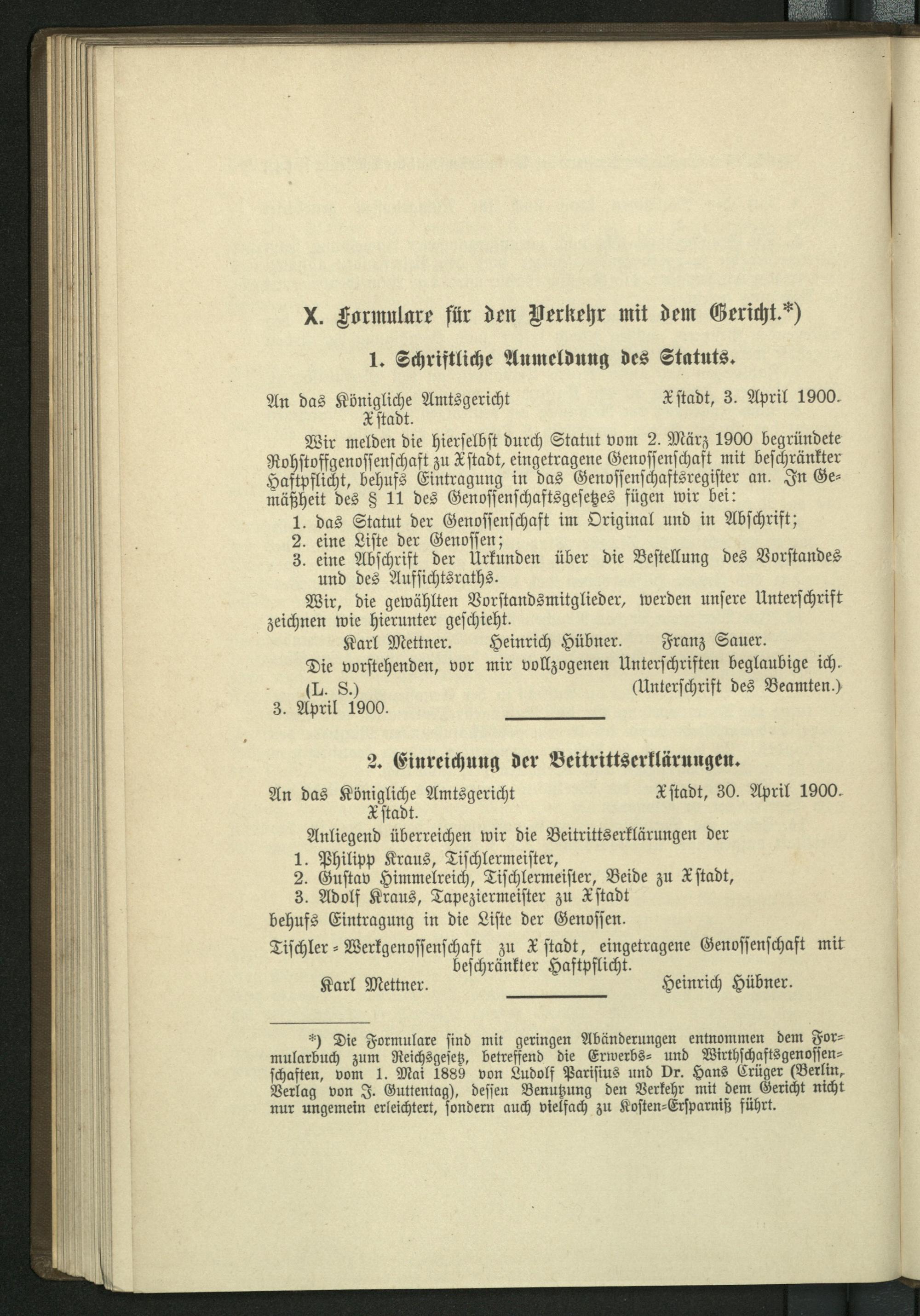 X. Formulare für den Verkehr mit dem Gericht.