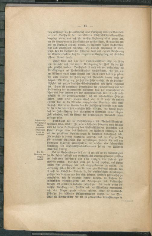 Die Verhandlungen zur Verlängerung des Waffenstillstandes in Trier am 15. und 16. Januar 1919 : nebst dem Briefwechsel zwischen Staatssekretär Erzberger und Marschall Foch / Deutsche Waffenstllstandskommission