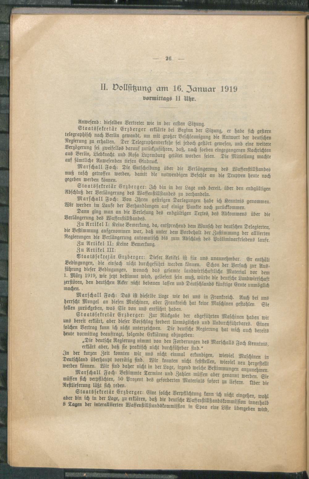 I. Vollsitzung der Waffenstillstandskommission am 15. Januar 1919, 10 Uhr vormittags