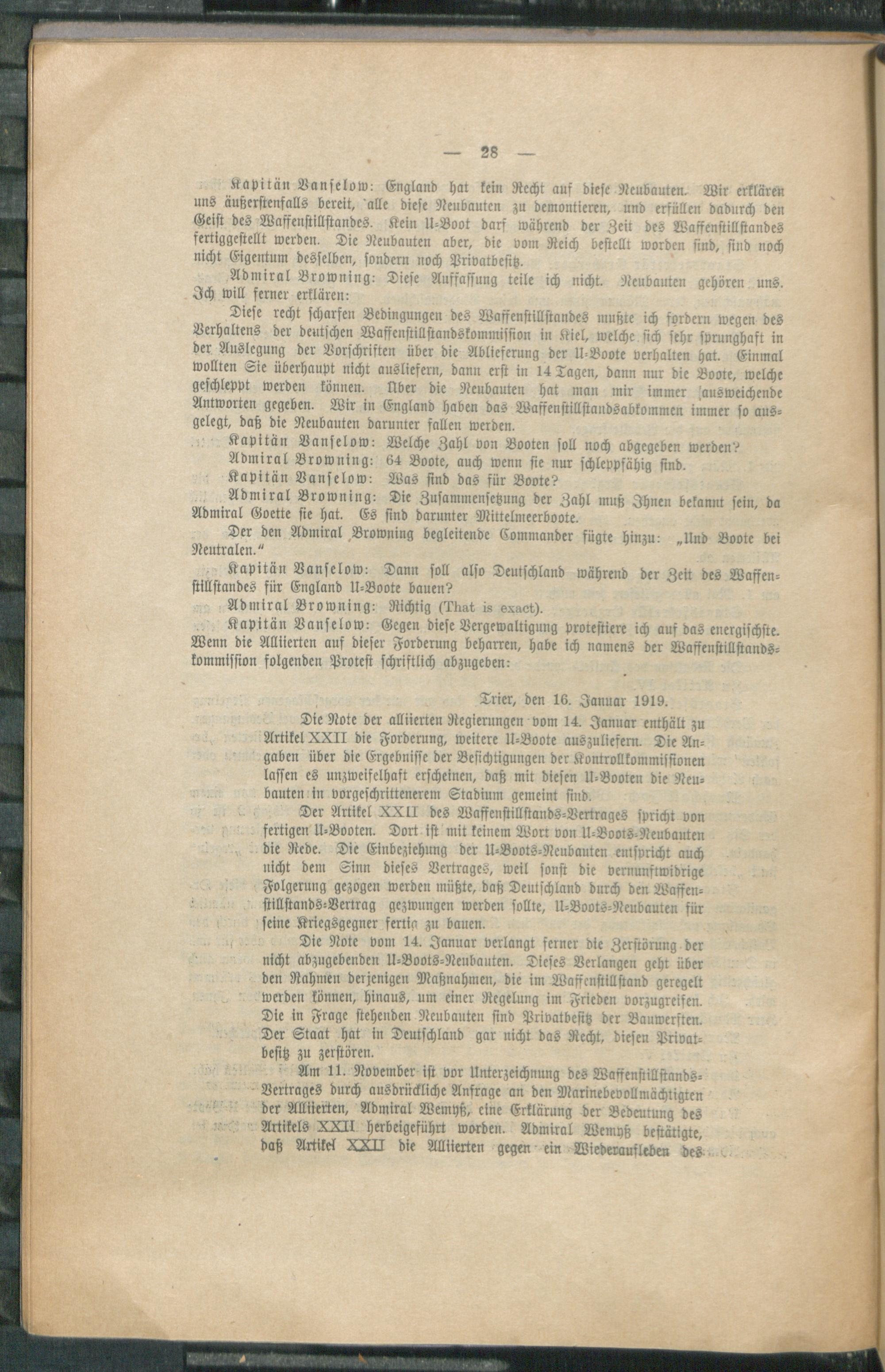 I. Vollsitzung der Waffenstillstandskommission am 15. Januar 1919, 10 Uhr vormittags