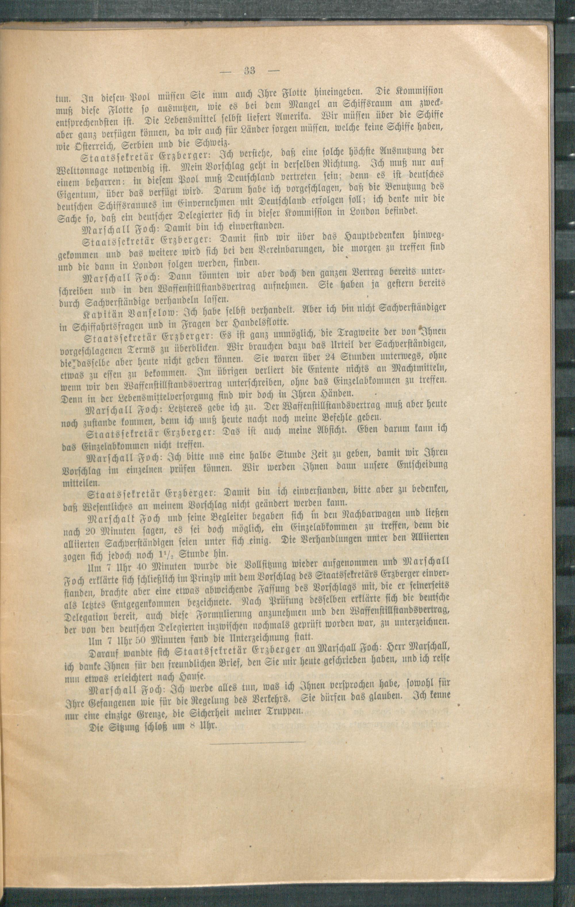 Die Verhandlungen zur Verlängerung des Waffenstillstandes in Trier am 15. und 16. Januar 1919 : nebst dem Briefwechsel zwischen Staatssekretär Erzberger und Marschall Foch / Deutsche Waffenstllstandskommission