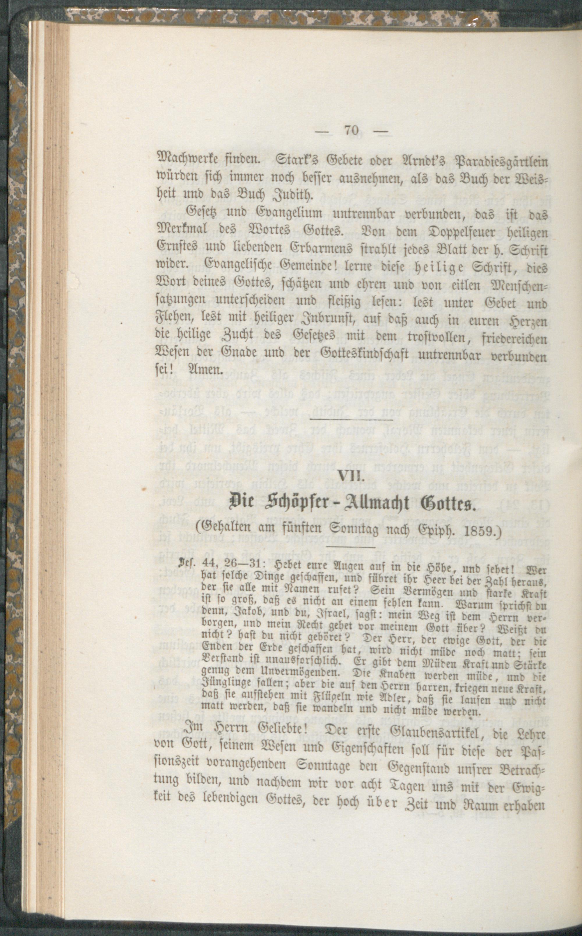 VII. Die Schöpfer - Allmacht Gottes. (Gehalten am fünften Sonntag nach Epiph. 18...