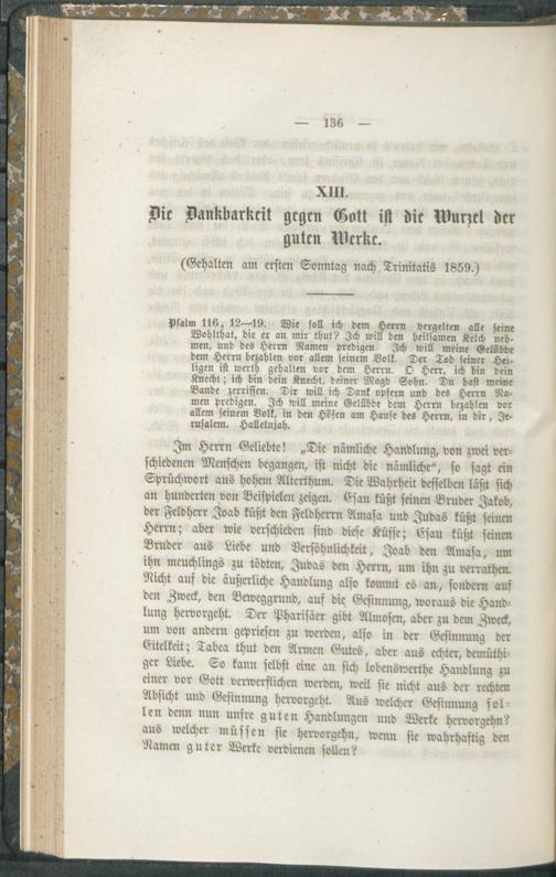 XIII. Die Dankbarkeit gegen Gott ist die Wurzel der guten Werke. (Gehalten am ersten Sonntag nach Trinitatis 1859.)
