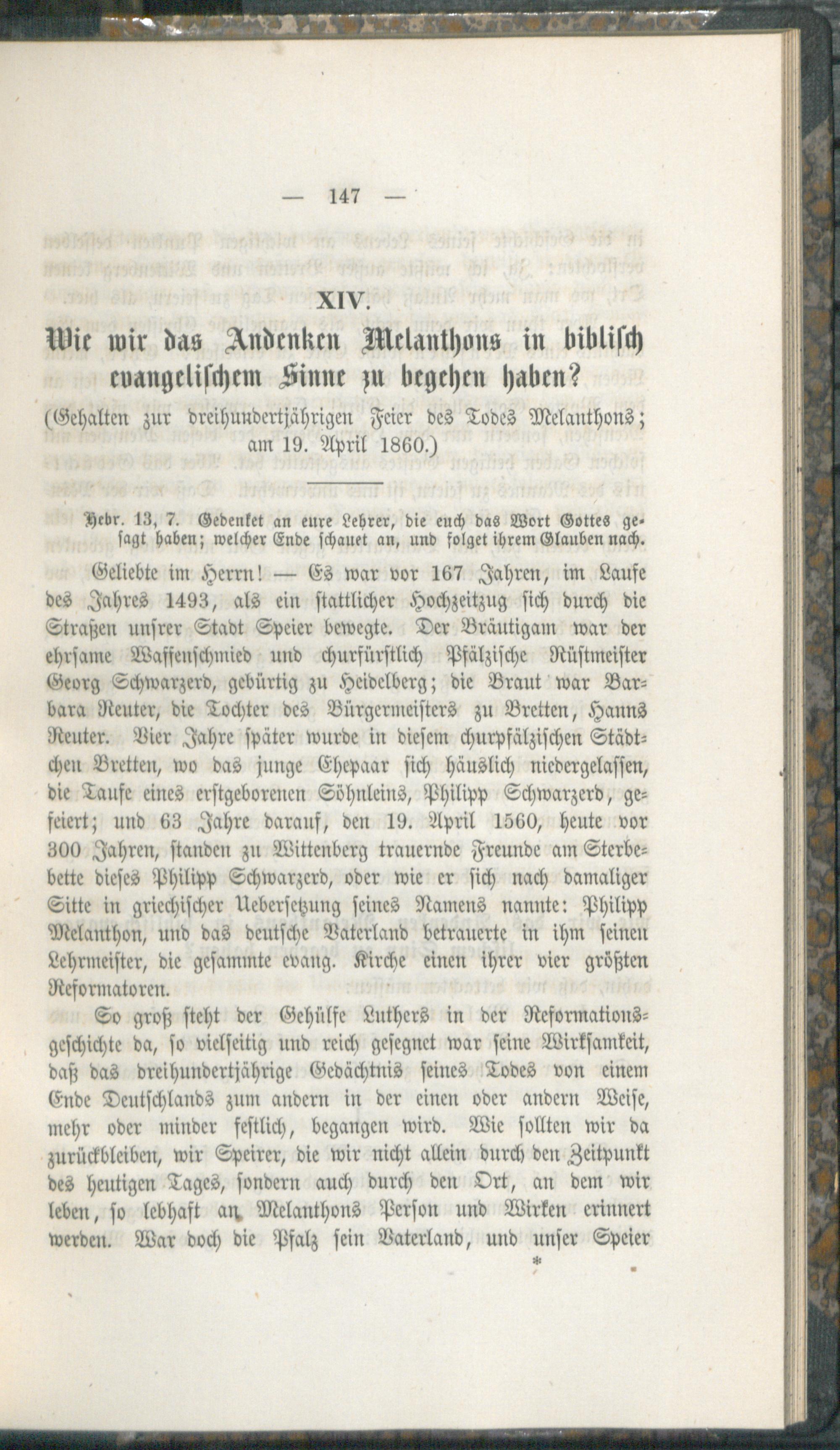 XIV. Wie wir das Andenken Melanthons in biblich evangelischem Sinne zu begehen haben?...