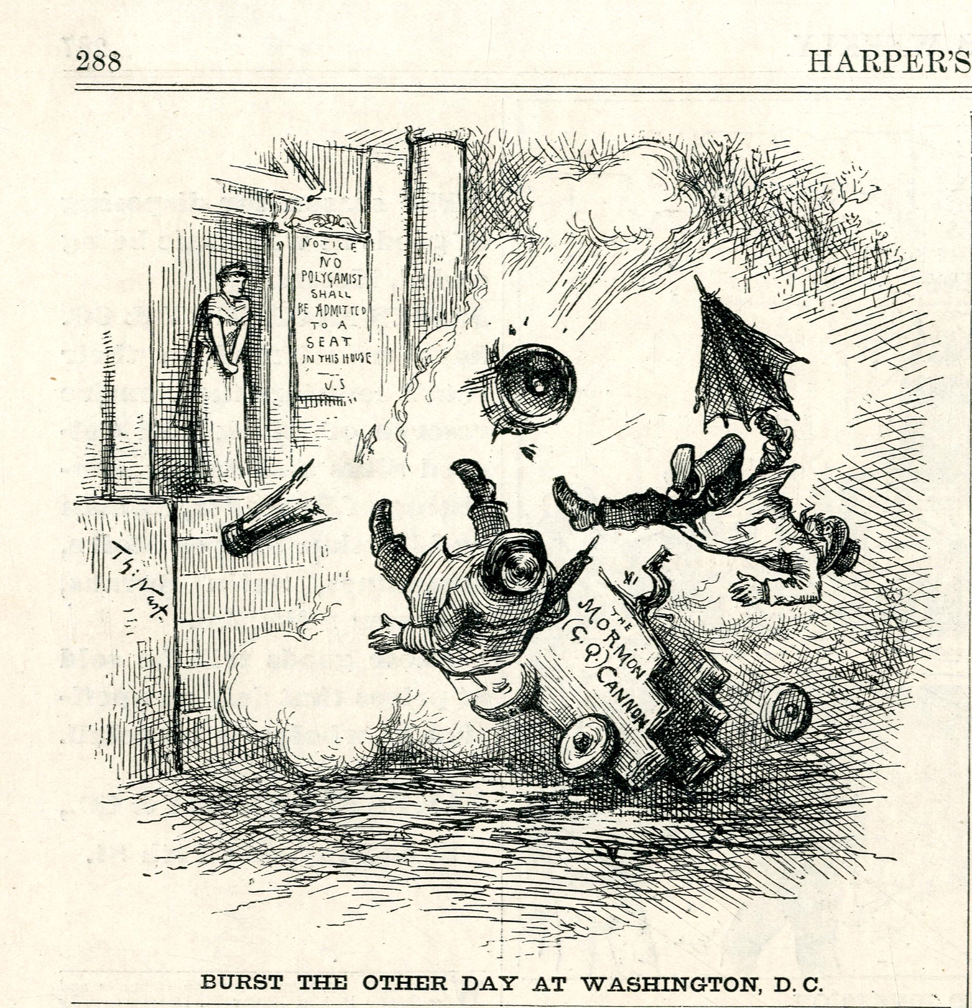 Burst the other day at Washington, D.C : eine Kanone, mit der Mormonen das Repräsentantenhaus bedroht hatten, explodiert / Th. Nast