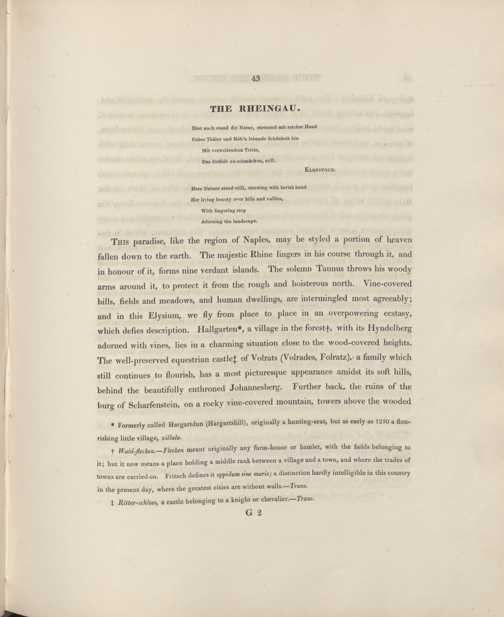 A picturesque tour along the Rhine from Mentz to Cologne : with illustrations of the scenes of remarkable events, and of popular traditions / by J. J. von Gerning. Embellished with twenty-four highly finished and coloured engravings, from the drawings of M. Schuetz ... Translated from the German by John Black