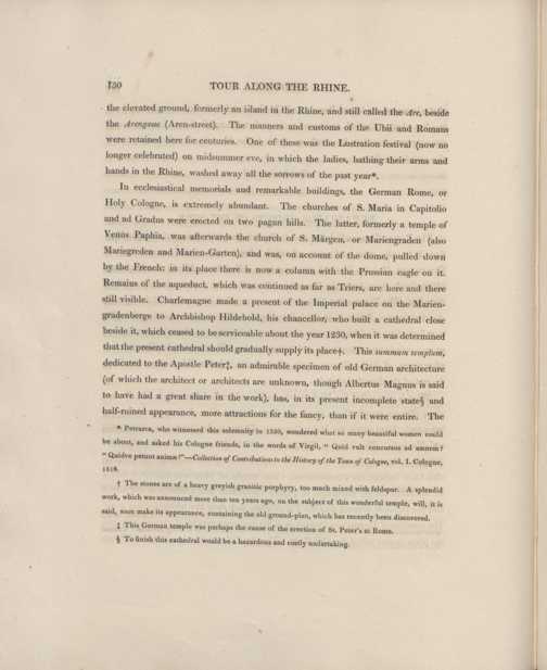 A picturesque tour along the Rhine from Mentz to Cologne : with illustrations of the scenes of remarkable events, and of popular traditions / by J. J. von Gerning. Embellished with twenty-four highly finished and coloured engravings, from the drawings of M. Schuetz ... Translated from the German by John Black