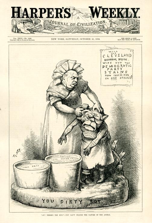 "Ay! There's the rub!" - You can't change the nature of the animal : Grover Cleveland bürstet den schmutzigen demokratischen Tiger ab / Th. Nast